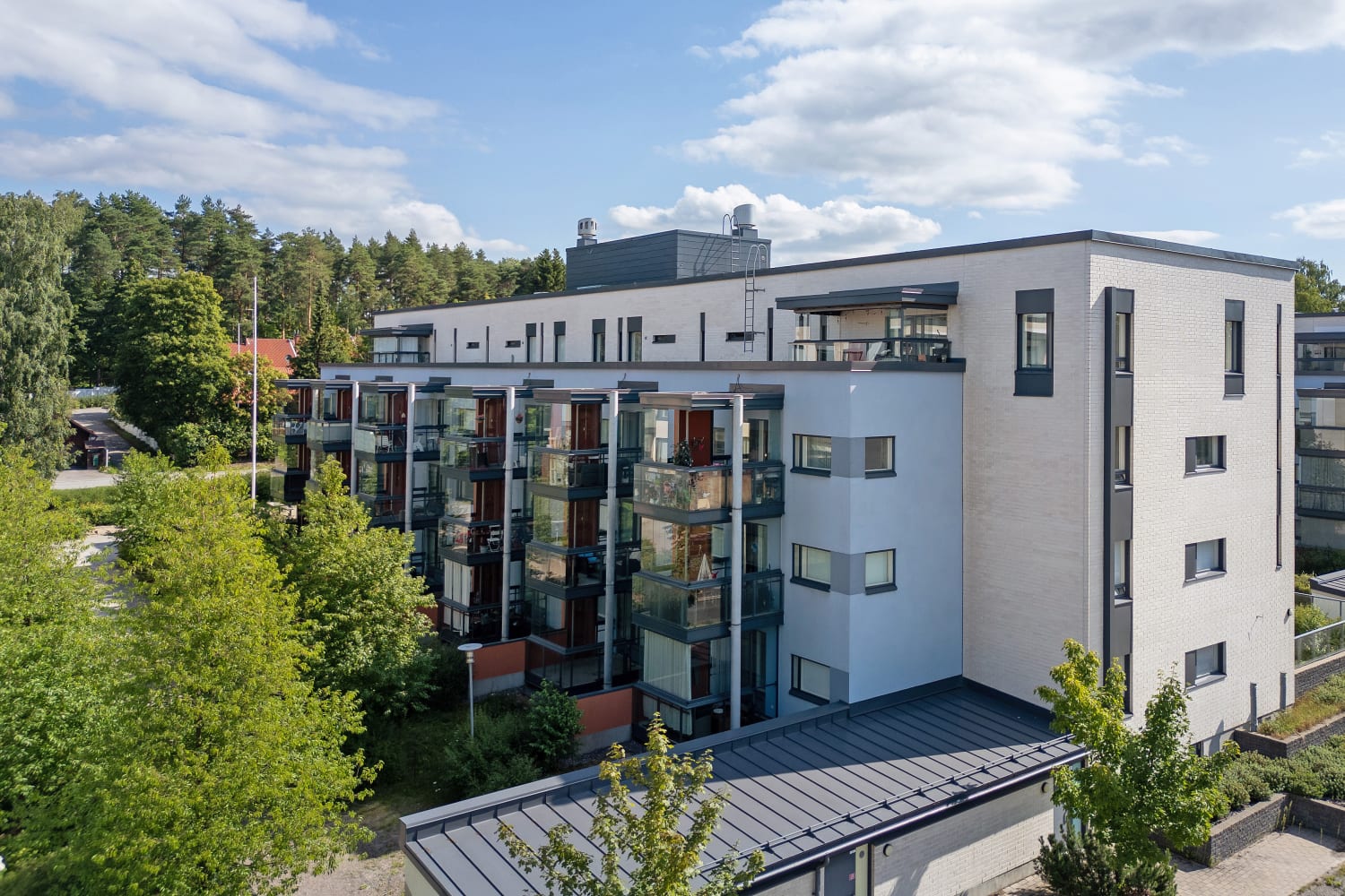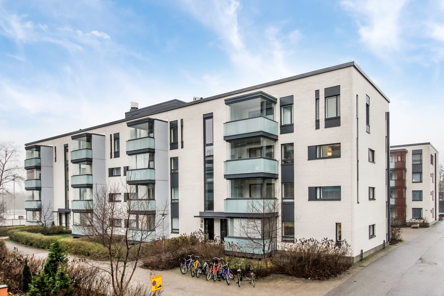 The layouts of these apartments with a light colour scheme are practical and easy to furnish. The apartments have a glassed-in balcony or access to a terrace from a ground-level balcony. The floors are in laminate and the kitchen units are fresh white in colour. The kitchens are equipped with ceramic cooktops, dishwashers and refrigeration appliances. The bathrooms are laid in pale grey tiles and have space and hookups for a washing machine.