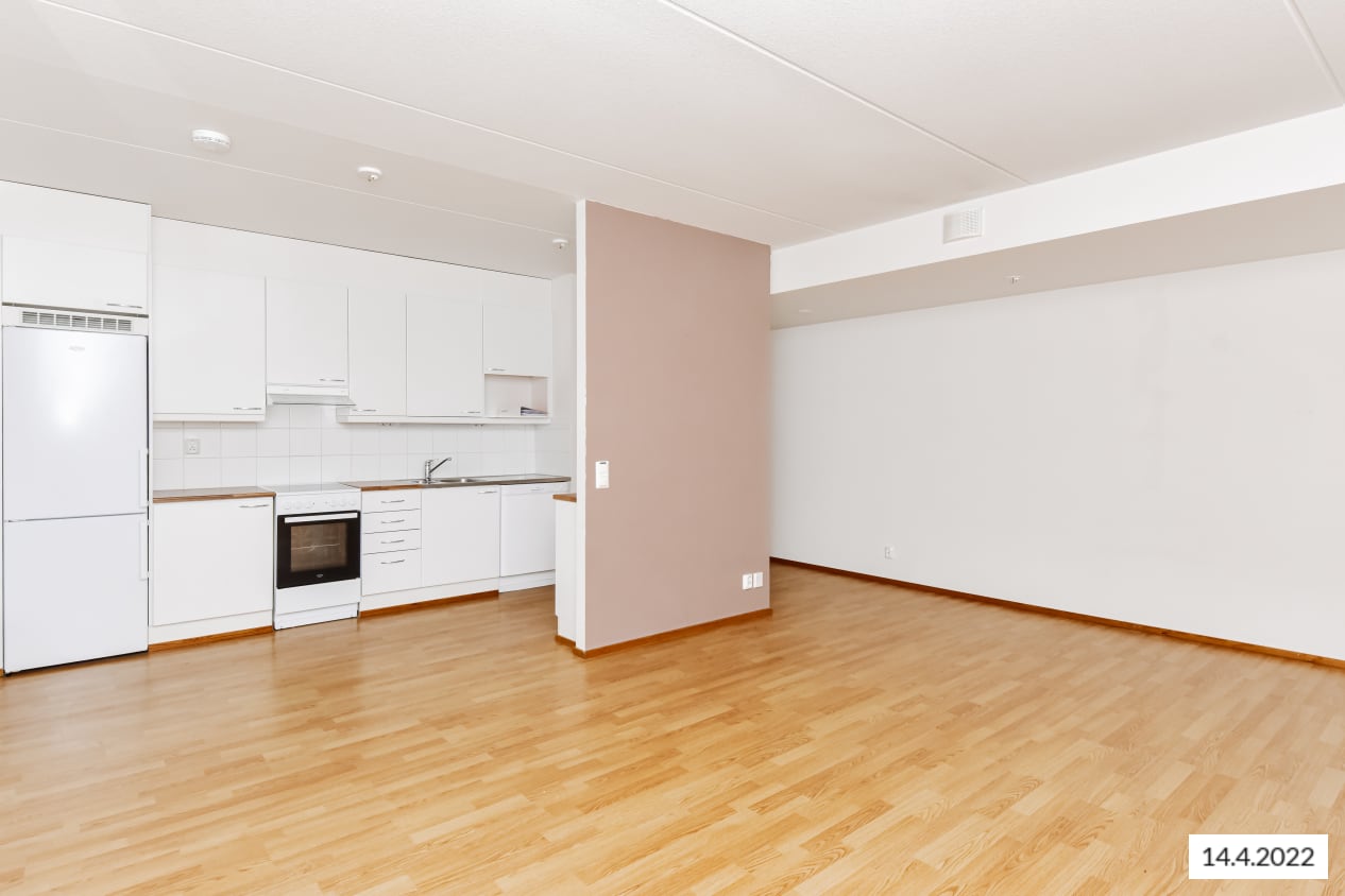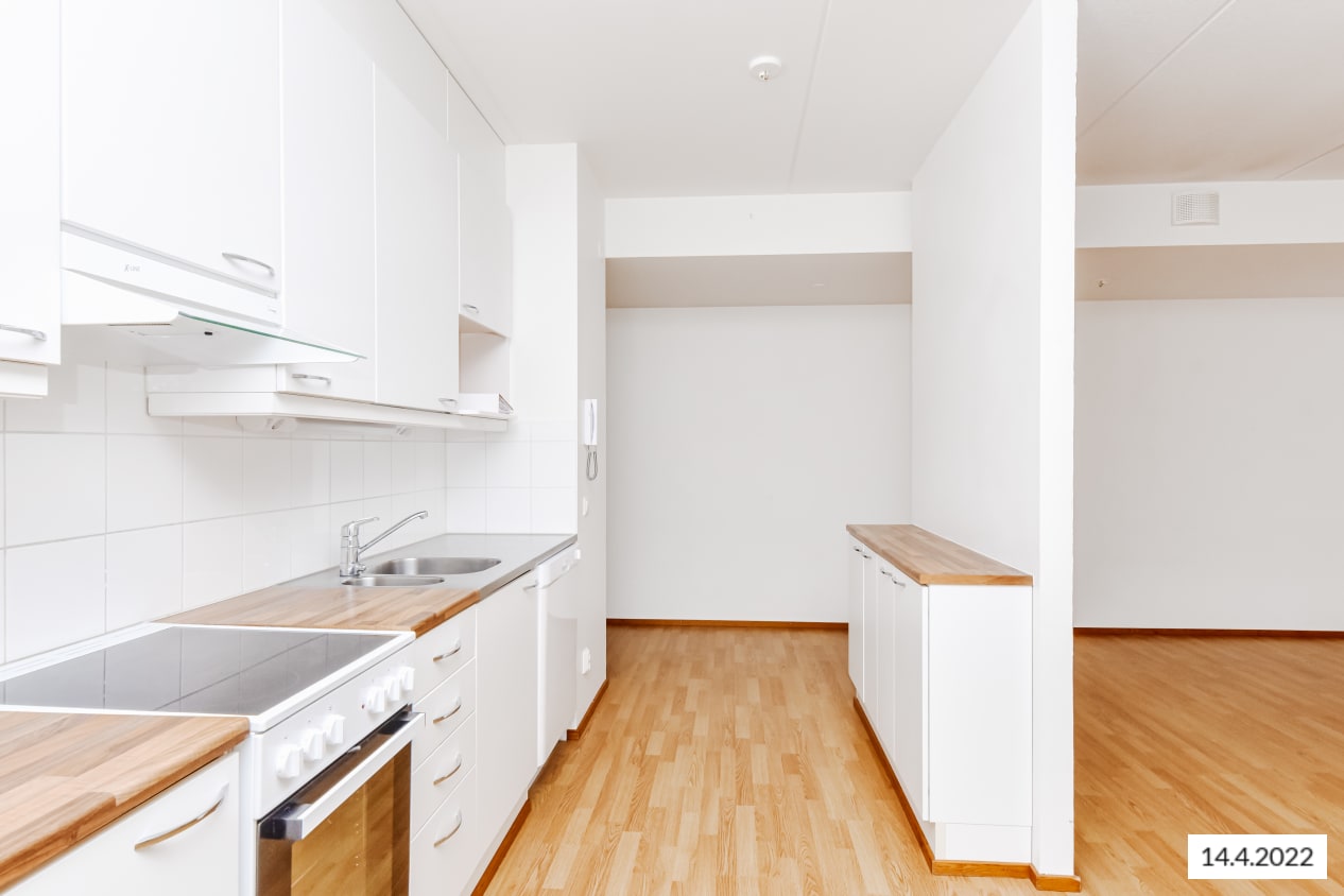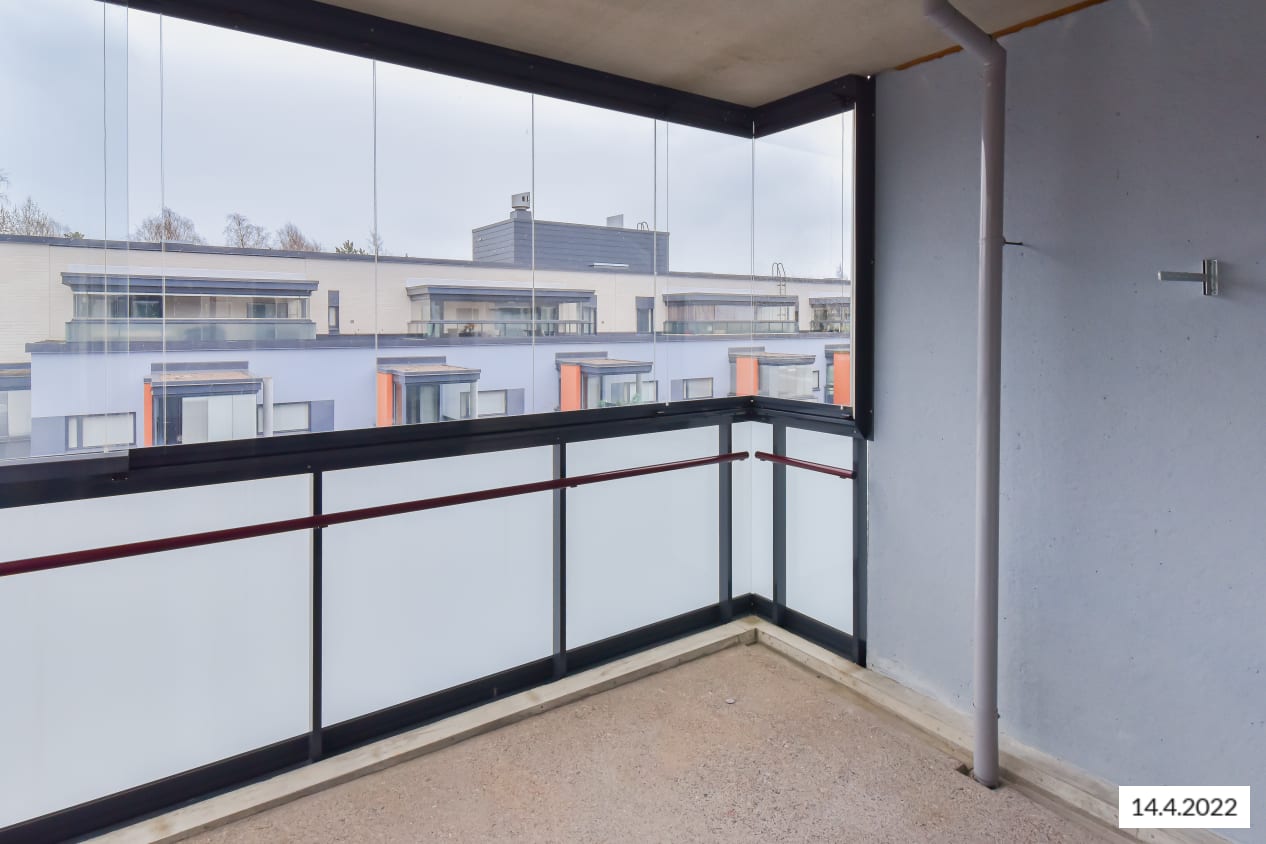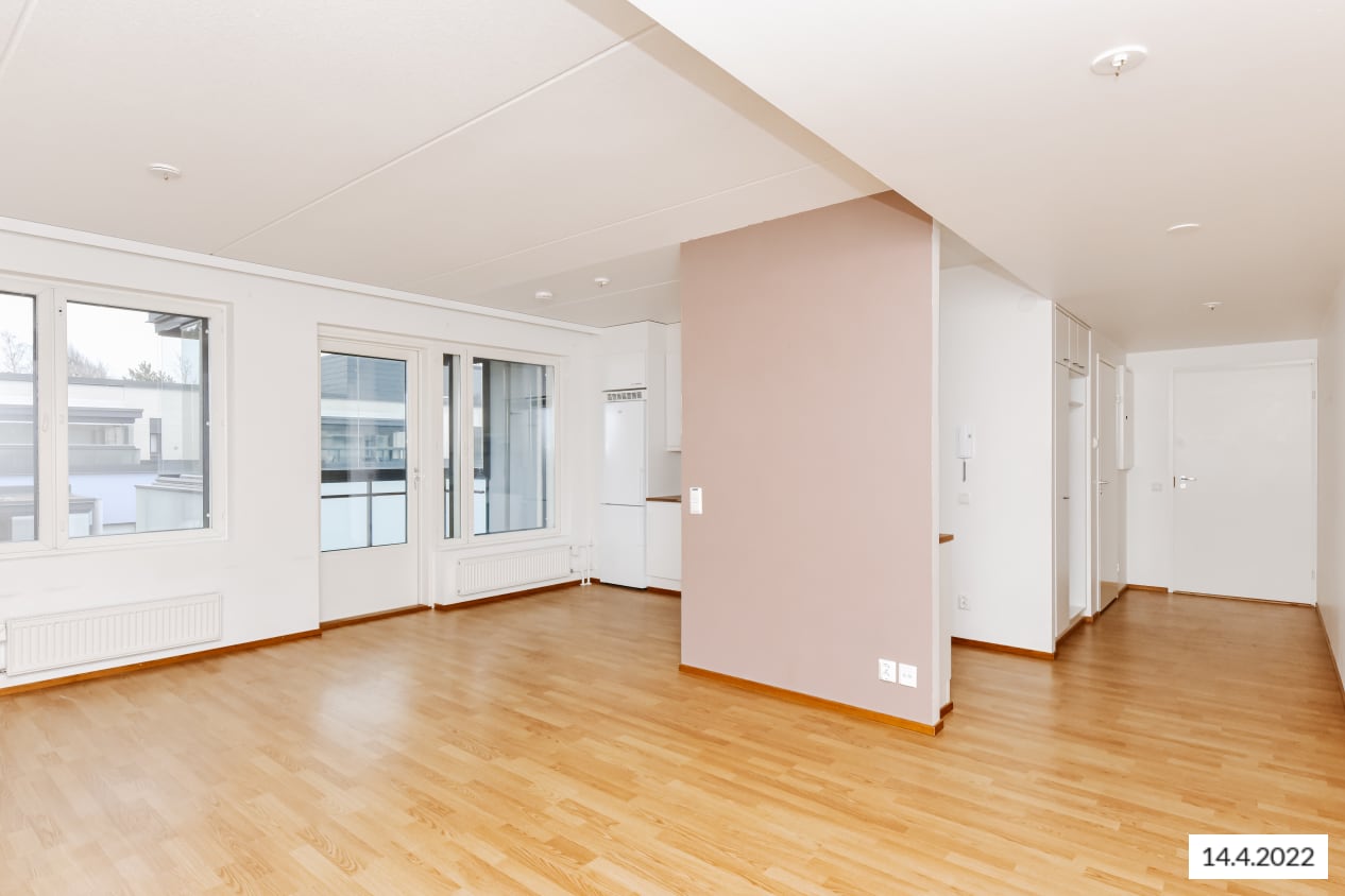 The layouts of these apartments with a light colour scheme are practical and easy to furnish. The apartments have a glassed-in balcony or access to a terrace from a ground-level balcony. The floors are in laminate and the kitchen units are fresh white in colour. The kitchens are equipped with ceramic cooktops, dishwashers and refrigeration appliances. The bathrooms are laid in pale grey tiles and have space and hookups for a washing machine.