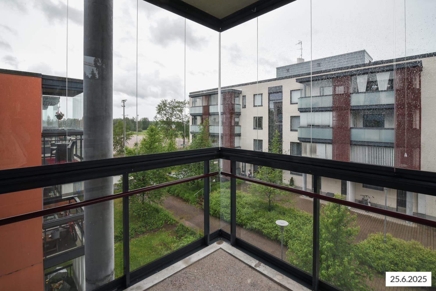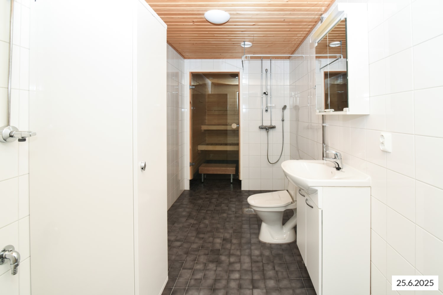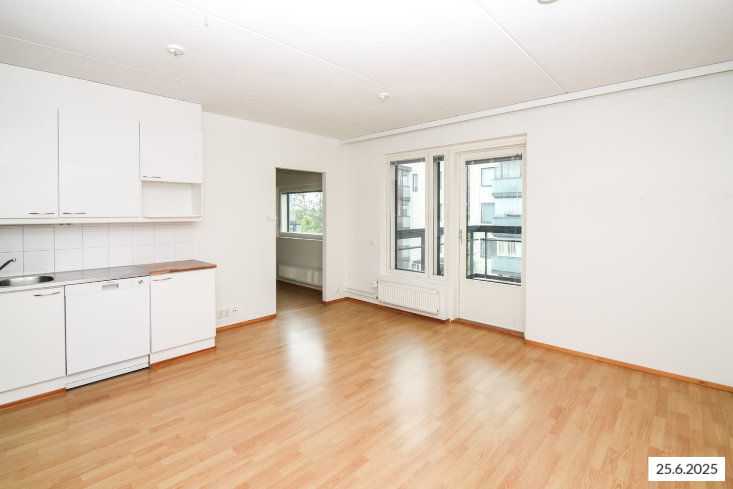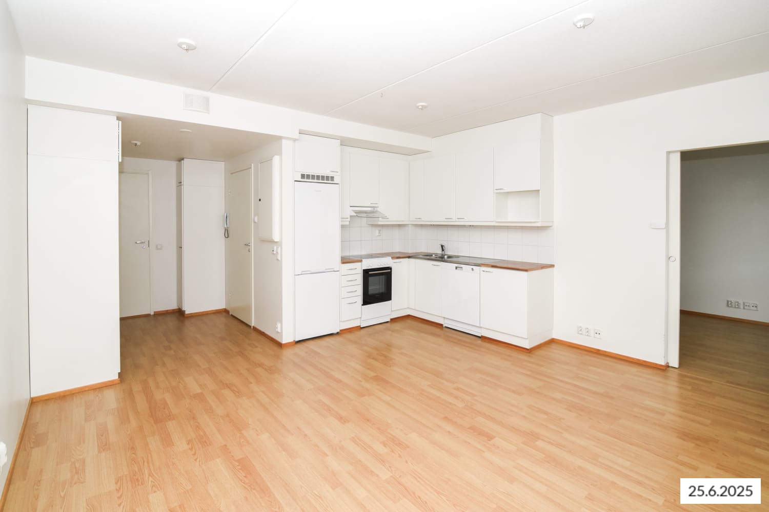 The layouts of these apartments with a light colour scheme are practical and easy to furnish. The apartments have a glassed-in balcony or access to a terrace from a ground-level balcony. The floors are in laminate and the kitchen units are fresh white in colour. The kitchens are equipped with ceramic cooktops, dishwashers and refrigeration appliances. The bathrooms are laid in pale grey tiles and have space and hookups for a washing machine.