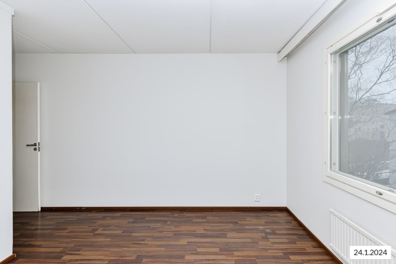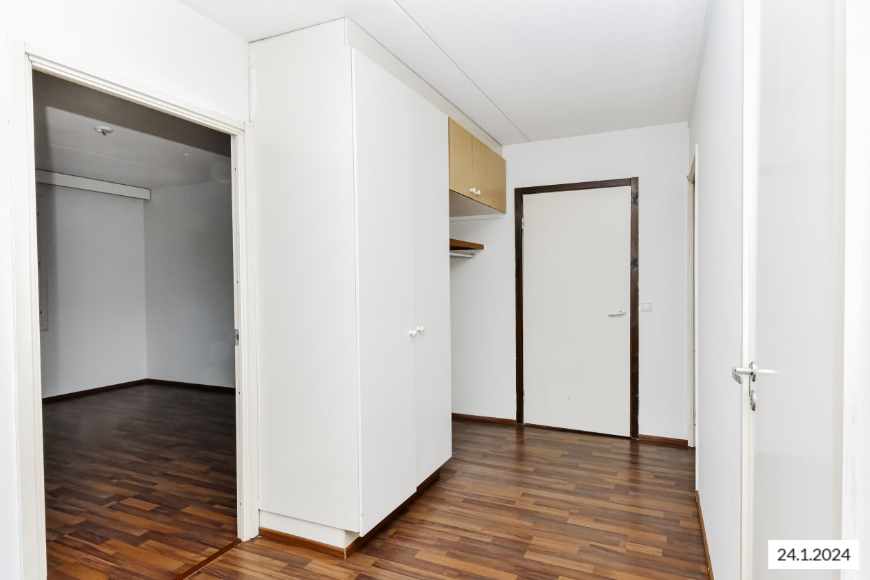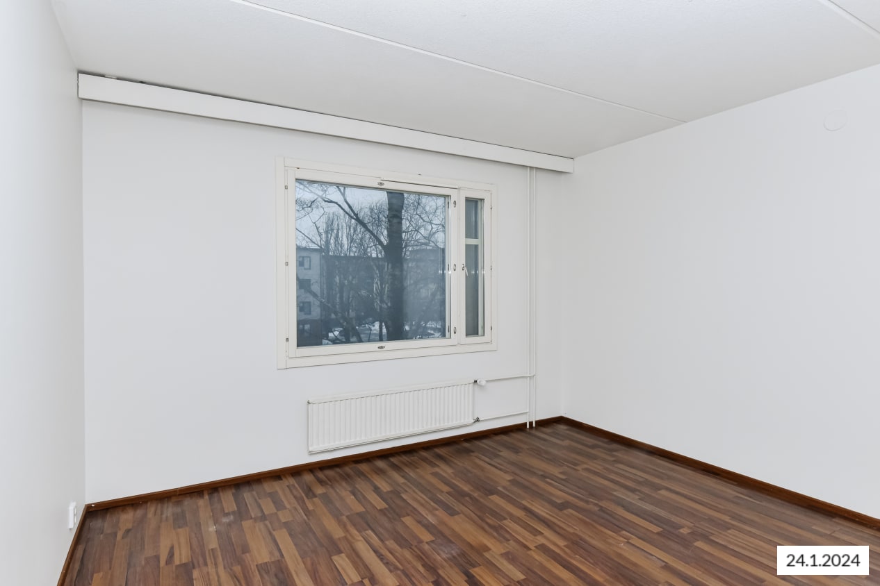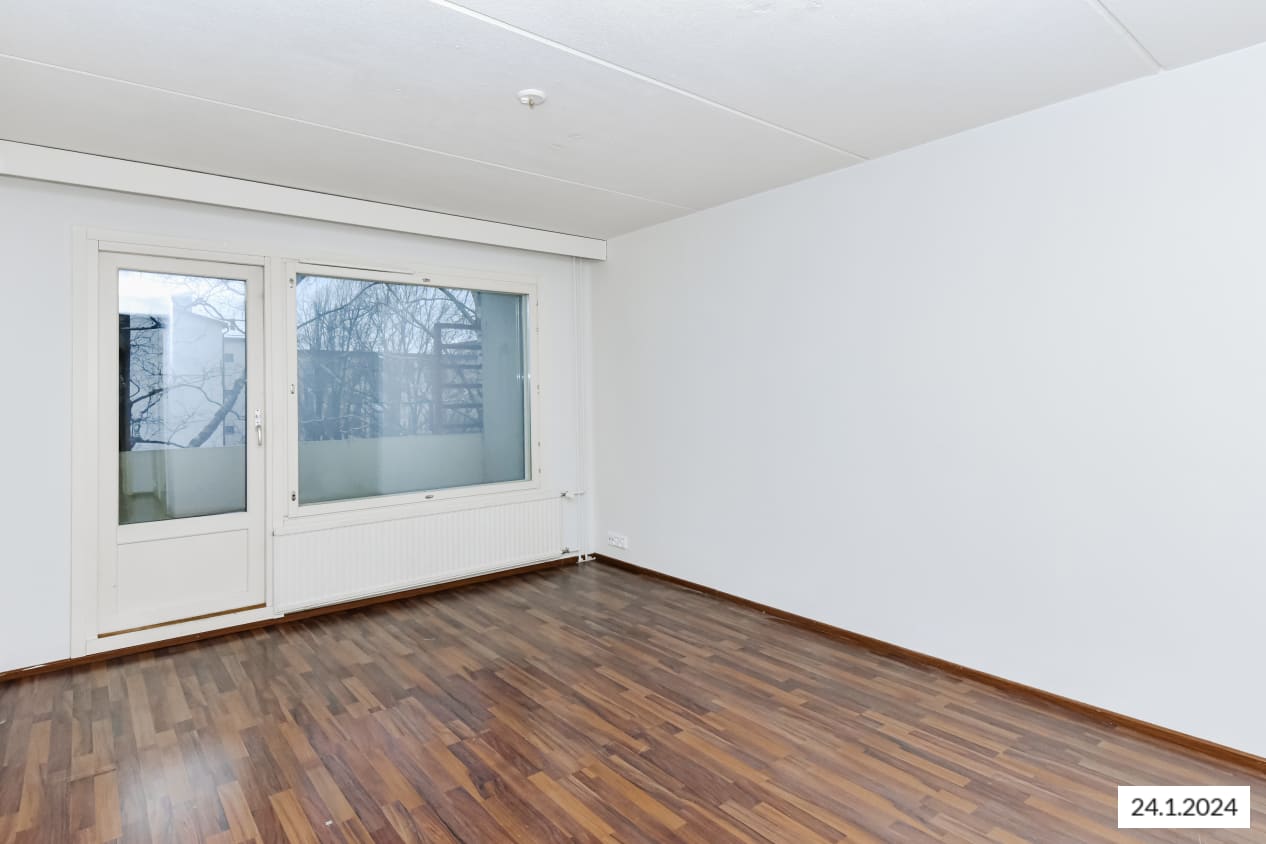 This pleasant low-rise building stands at the southern edge of Tikkurila close to Finnish Science Centre Heureka. The clean-lined 1970s layouts feature large rooms and kitchens distinctly separated from the living rooms.
