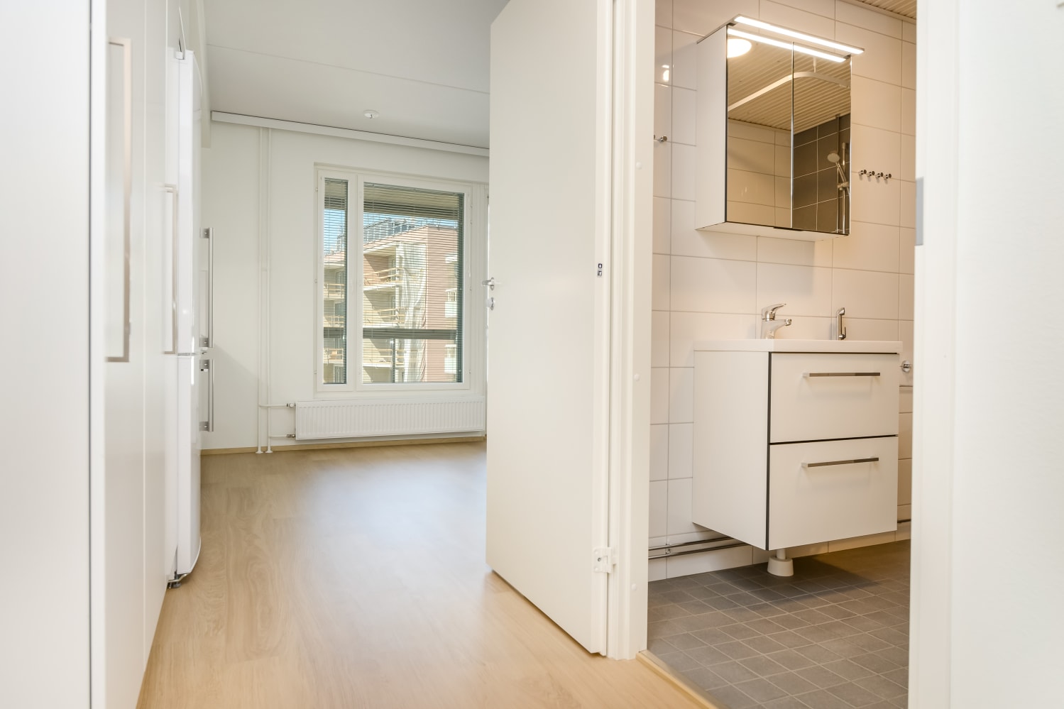 Talvikkitie 38 is located at the corner of Hernetie and Talvikkitie streets. The 6–7-storey building has 132 SATO RentHomes from compact studios and one-bedrooms to spacious homes with a sauna. Thanks to the winding shape of the building, most of the homes are light-filled corner apartments. Some of the studios have a French balcony and the other apartments have a glassed-in balcony. There is a shared courtyard area protected by the building and providing a lovely setting for spending time, meeting neighbours and enjoying the evening sun. The top floor has two sauna sections for residents to use. The apartment-specific and outdoor equipment storage units can be found in the basement, and storage for bikes is also available in a separate building on the grounds. Car parking is mainly available at street level in an indoor parking facility under the raised courtyard from where you have direct indoor lift access to your apartment. There is also a restaurant with seating for around 90 customers on the ground floor. All apartments, including balconies and terraces, as well as the entire building, including outdoor areas, are no-smoking zones.