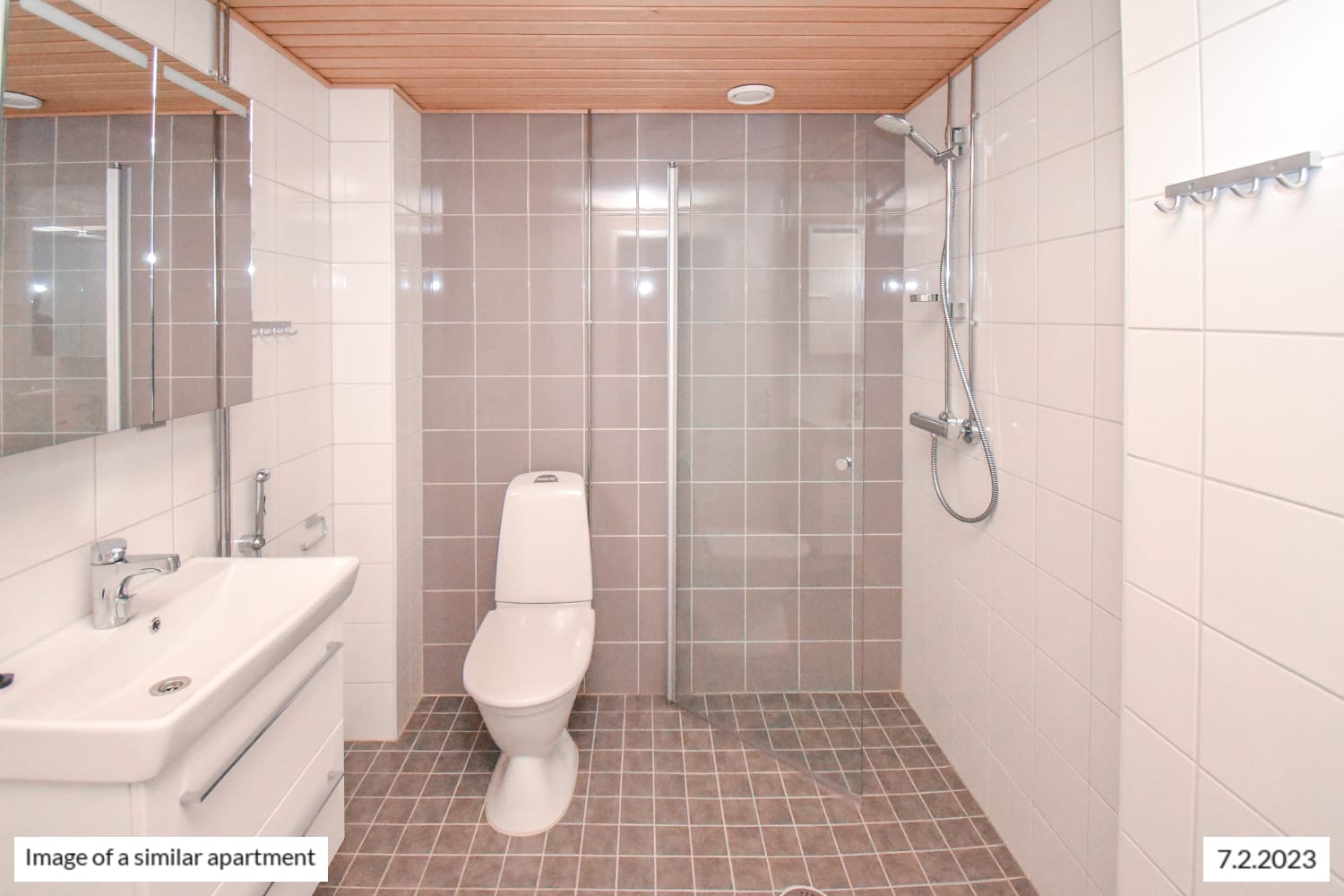 The kitchen area is equipped with a dishwasher and an easy-to-clean induction hob. The tiled bathroom is fresh and has connections for your washing machine.
