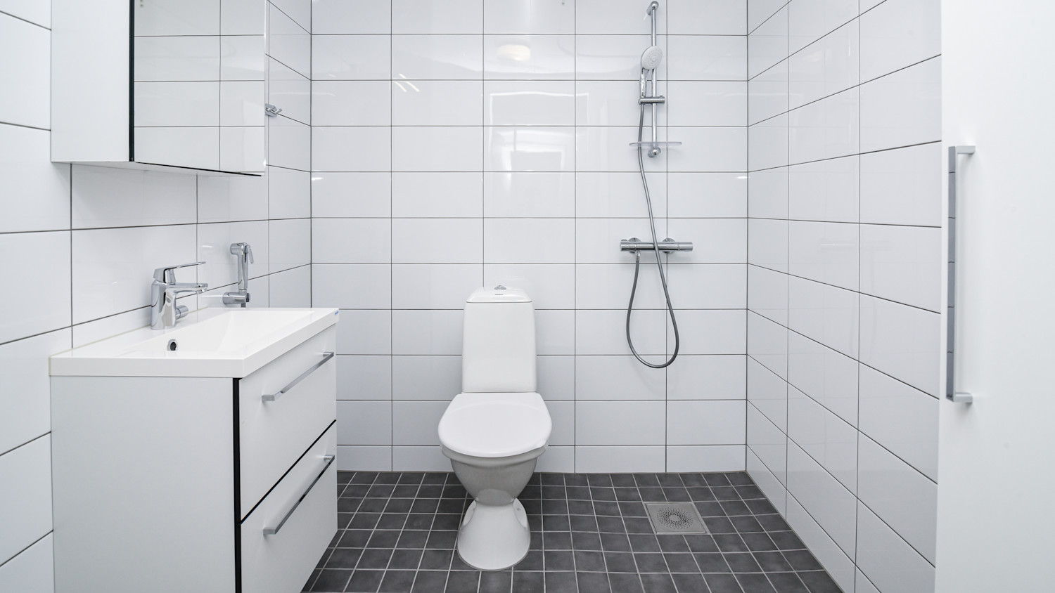 Kodin pintamateriaalit ovat vaaleita ja sopivat moneen makuun. Lattia on tammilaminaattia ja seinät on maalattu valkoisiksi. Linjakkaassa avokeittiössä on valkoiset, puusyykuvioiset kaapistot. Ylä- ja alakaappien välinen tila ja työtaso ovat harmaata laminaattia. Varustukseen kuuluu kalusteuuni ja induktiotaso, liesikupu, astianpesukone ja jää-pakastinkaappi. Kodinkoneet ovat valkoiset. Kylpyhuoneessa on valkoiset kalusteet ja paikka pyykinpesukoneelle. Seinät ovat valkoista ja lattia harmaata laattaa.