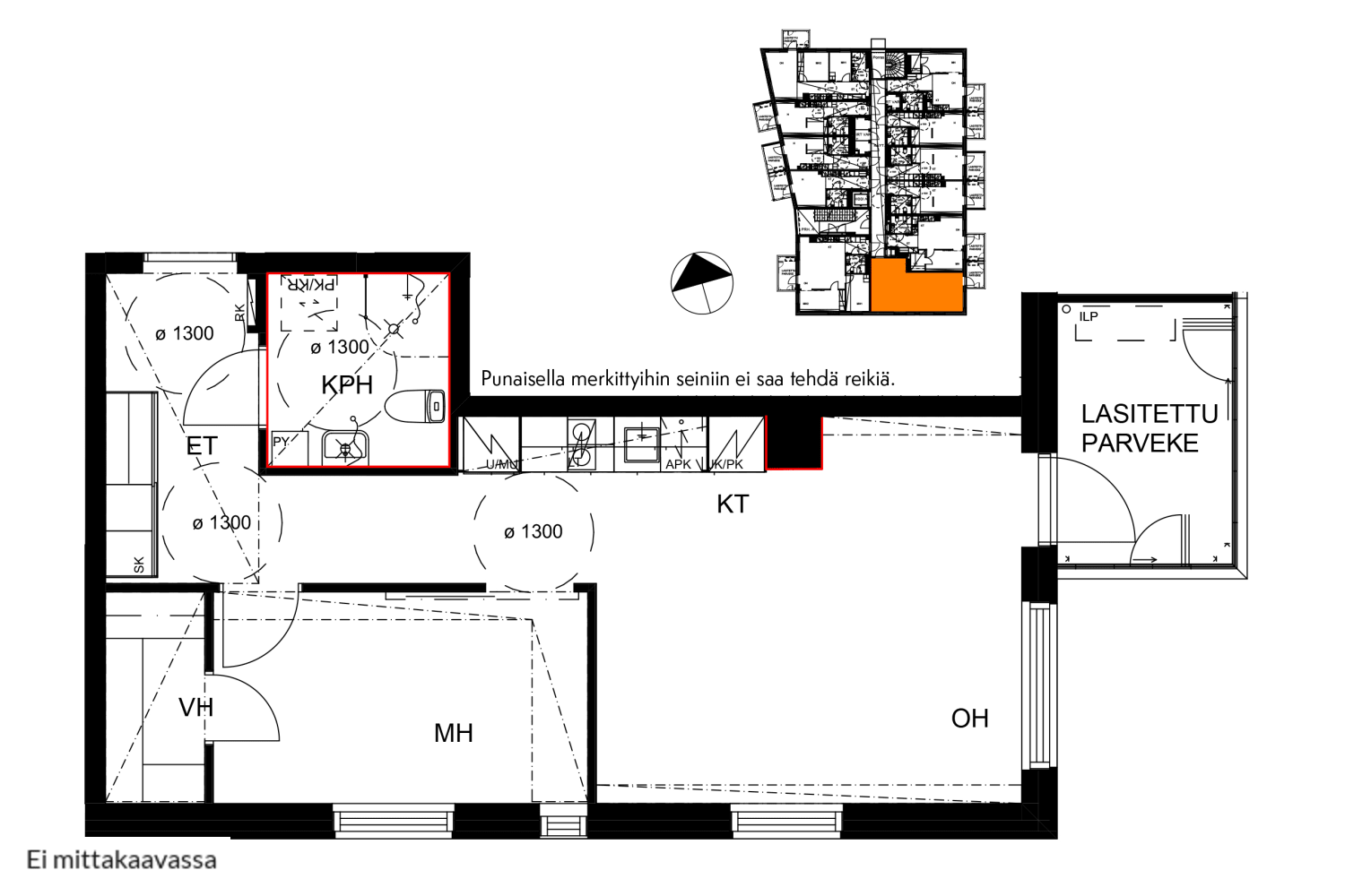 Moneen taipuvassa tehokaksiossa on tehokas ja toimiva pohja. Kahteen ilmansuuntaan suuntautuvat ikkunat tuovat valoa sisään vuodenajasta riippumatta. Kesäaikaan voit jatkaa huonetta itään avautuvalle, lasitetulle parvekkeelle.