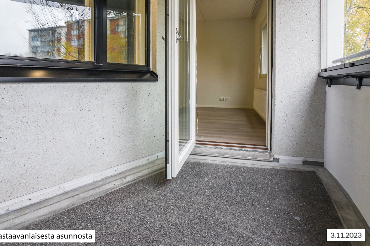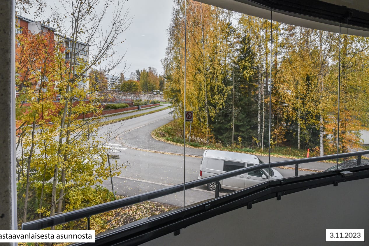 Hauska pohjaratkaisu ja vaaleasävyiset materiaalivalinnat tekevät valoisasta oleskelutilasta kotisi keskipisteen, jota voit kesällä jatkaa lasitetulle parvekkeelle. Ikkunasta ja parvekkeelta avautuu kaunis näkymä kaakkoon pienelle metsäkaistaleelle Kotkatien ja Kotkakujan suuntaan.