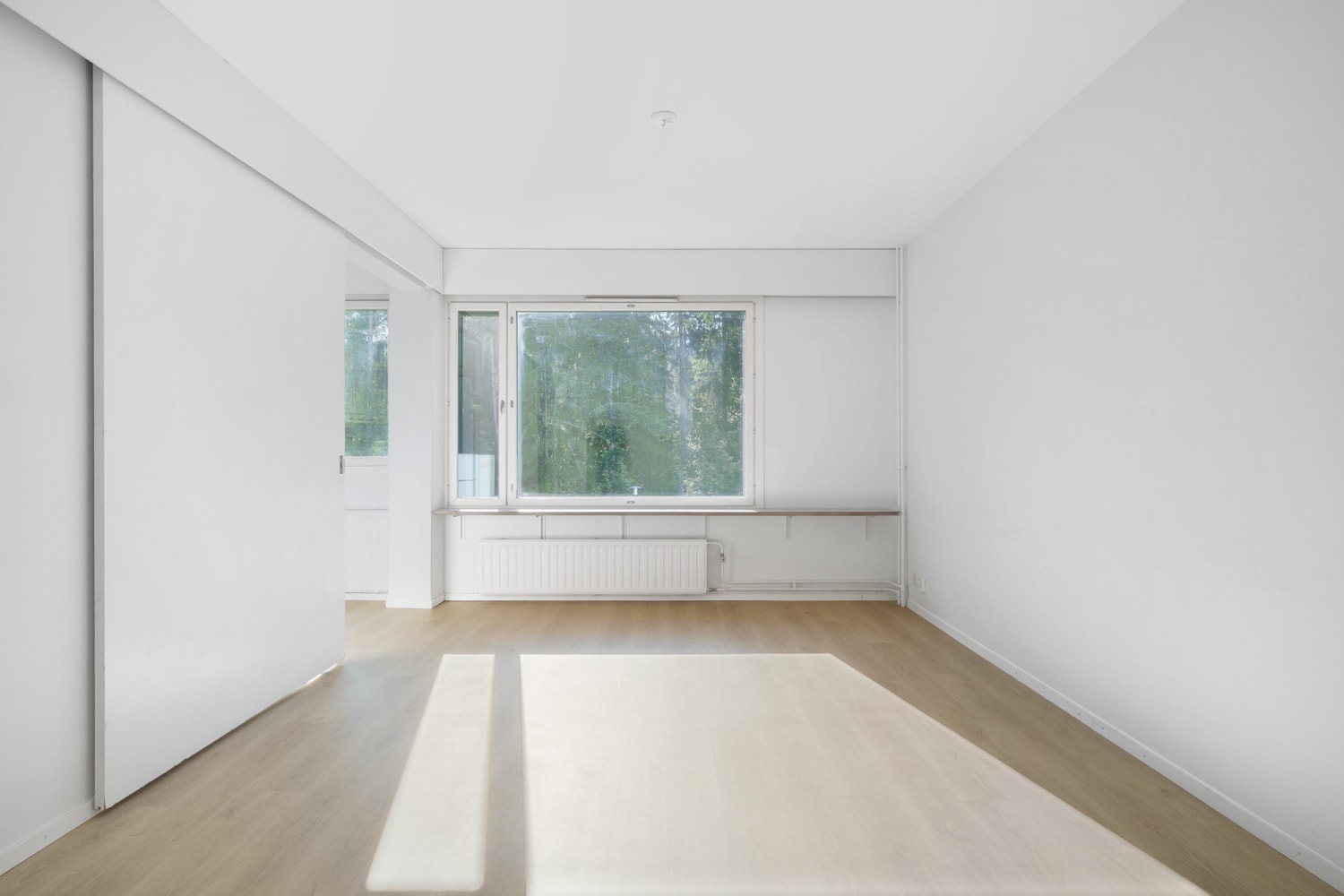 Viihtyisässä kaksiossa on selkeä, helposti kalustettava pohjaratkaisu. Säilytystilaa on mukavasti eteisen kaapeissa ja näppärässä vaatehuoneessa.