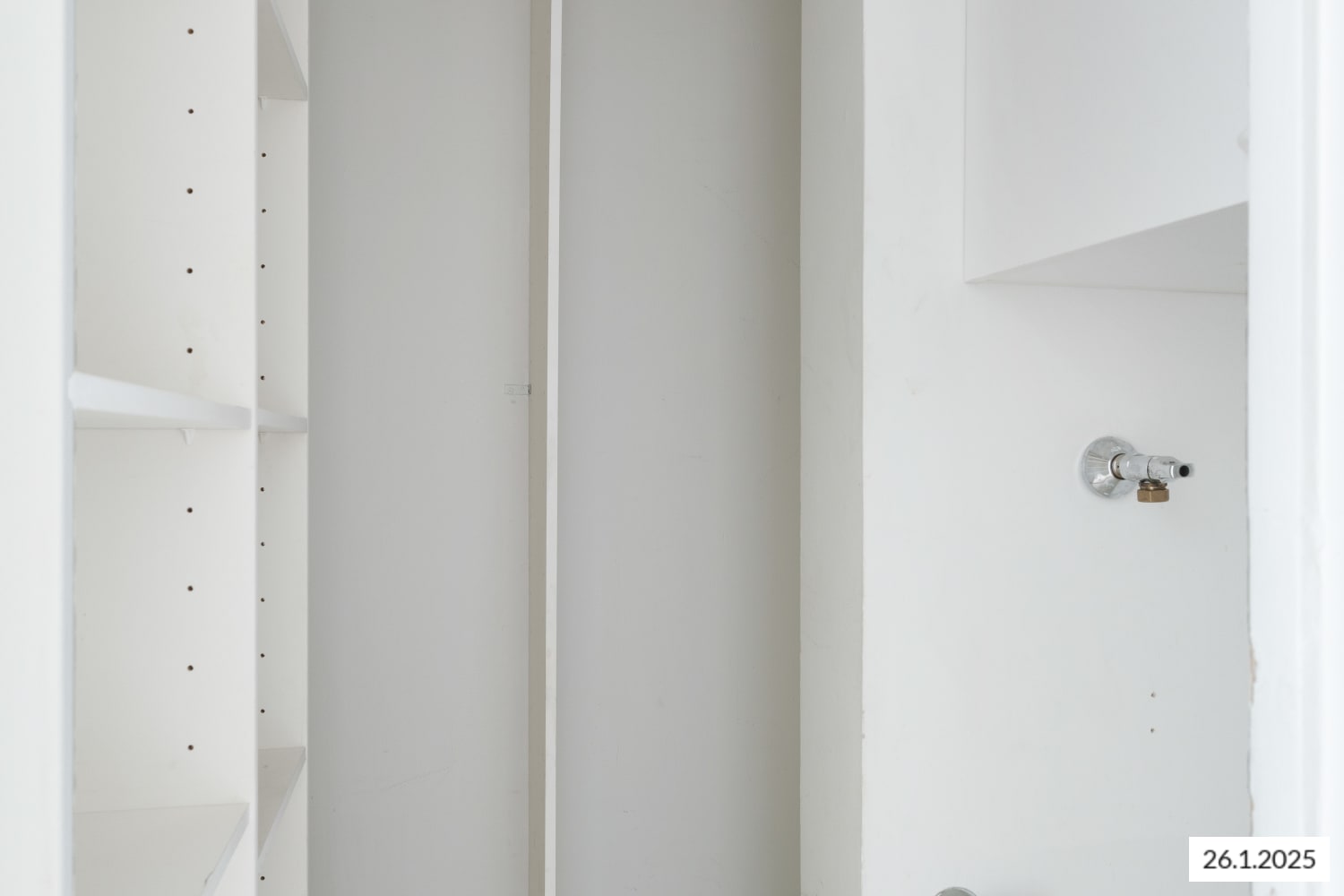 Tämän kodin käytännöllinen erikoisuus on erillinen vaatehuone, jossa on tila ja liitännät pyykinpesukoneelle.