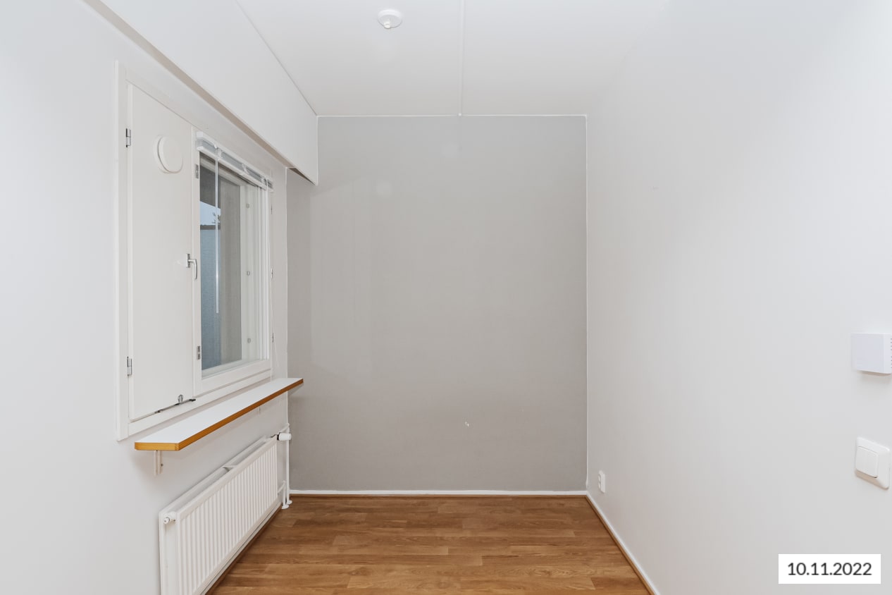 Toisen kerroksen selkeälinjaisen yksiön ikkunat aukeavat kahteen suuntaan. Reilun kokoisen olohuoneen yhteydessä on alkovi ja käynti mukavan kokoiselle länsiparvekkeelle. Erilliseen keittiöön mahtuu ruokapöytä. Säilytystilaa löytyy eteisestä.