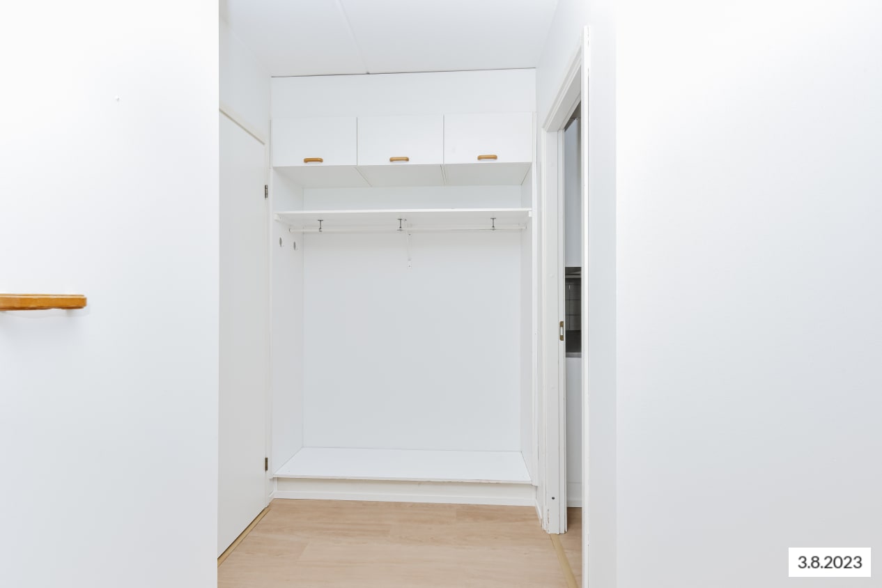 aamuaurinkoon suuntautuvalle mukavan kokoiselle parvekkeelle. Eteisessä on tavallista reilummin
