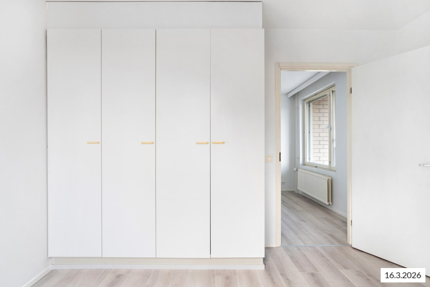 Olohuoneesta on käynti reilun kokoiselle parvekkeelle. Makuuhuoneessa on