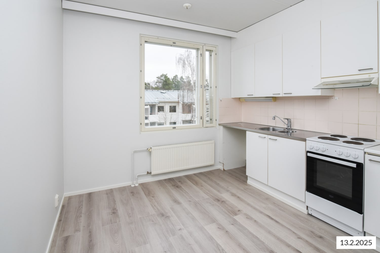 Asuinhuoneiden lattiamateriaalina on muovimatto ja kylpyhuoneen seinät on kaakeloitu. Keittiössä on jää-viileäkaappi ja pakastin.