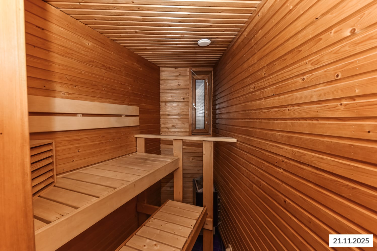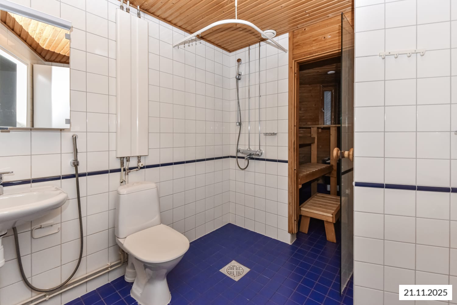 Keittiössä on tilavaraus astianpesukoneelle. Kylpyhuoneessa on laatoitettu lattia ja liitännät pesukoneelle. Tunnelmallinen sauna vie asumisen mukavuuden uudelle tasolle.