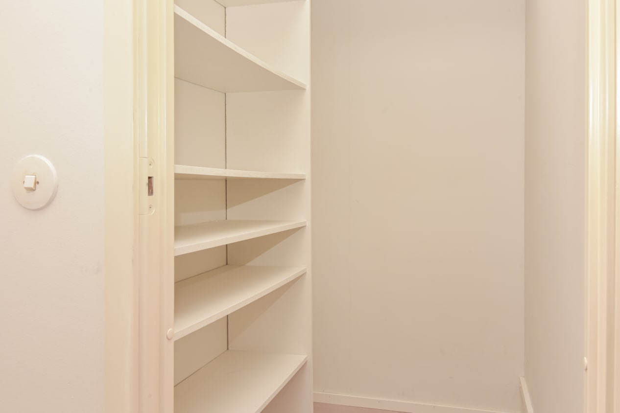 Lattiamateriaalina toimii puulaminaatti. Keittiön kaapistot ja kodinkoneet ovat puhtaanvalkoisia. Varustukseen kuuluu lattiauuni, liesi, jääkaappi ja pakastin. Kylpyhuoneessa on kylpyamme ja tilavaraus pyykinpesukoneelle.