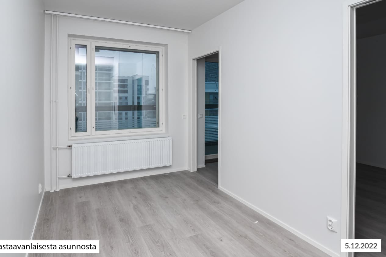 Näppärässä kaksiossa on toimiva pohja, joka antaa useita mahdollisuuksia kalustaa tila juuri sinulle sopivaksi. Täysin uuden asunnon jatkeena toimii koko tilan levyinen lasitettu parveke, josta on näkymät sisäpihalle. Kodin pintamateriaalit ovat ajattoman kauniita ja vaaleat sävyt toimivat neutraalina pohjana mille tahansa sisustustyylille. Eteisessä on useita vaatekaappeja ja lisäsäilytystilaa saat makuuhuoneen yhteydessä olevasta, reilun kokoisesta vaatehuoneesta. Makuuhuoneeseen mahtuu tuplaleveä sänky. Lisäksi makuuhuoneessa on tila, jonka voi kalustaa työntekoa varten tai vaikka urheilunurkkaukseksi. Avokeittiössä on raikkaan valkoiset kaapinovet ja marmorikuosiset laminaattitasot sekä runsaasti tilaa ruokapöydälle. Keittiön varustukseen kuuluu keraaminen liesitaso, kalusteuuni, astianpesukone ja kylmälaitteet sekä varaus mikroaaltouunille. Kylpyhuoneen kalusteet ovat ovat SATOlle suunniteltua, kotimaista Kide-mallistoa ja väriltään valkoiset. Kylpyhuoneen seinät ovat valkoista laattaa ja lattian laatoitus on tumman harmaa. Kylpyhuoneessa on varaus pesukoneelle ja kuivausrummulle. Tämä käytännöllinen koti muuntautuu moneen.