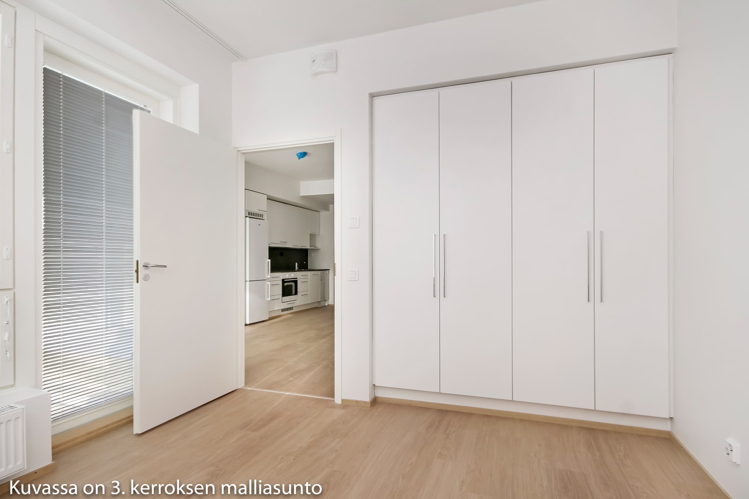 Selkeälinjaisen kaksion vaaleat pinnat miellyttävät silmää ja se on helppo kalustaa omaksi kodiksi. Avoin keittiö, ruokailutila ja olohuone muodostavat yhtenäisen, avaran oleskelualueen. Tilavalle lasitetulle parvekkeelle voi sisustaa oman viihtyisän kesäkeitaan.