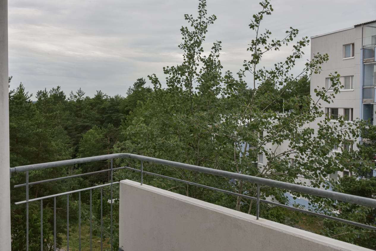 Vaaleansävyinen, saunallinen kaksio odottaa uutta asukastaan. Lattiat ovat tammensävyistä laminaattia ja seinät on maalattu. Keittiön ylä- ja alakaappien välinen tila on laatoitettu valkoisella laatalla. Vaaleiden pintojen konrastina toimii ikkunalautojen tummemman tammensävyiset puiset yksityiskohdat. Parveke tuo kotiin lisätilaa kesäaikana ja antaa rauhallisen paikan nauttia ulkoilmasta.