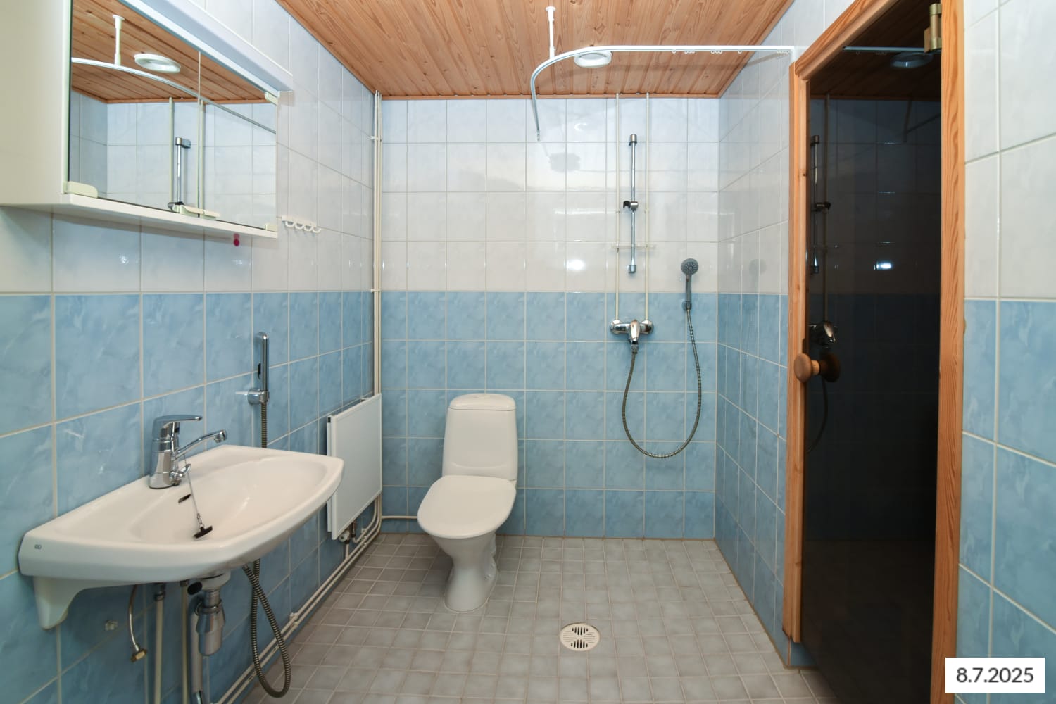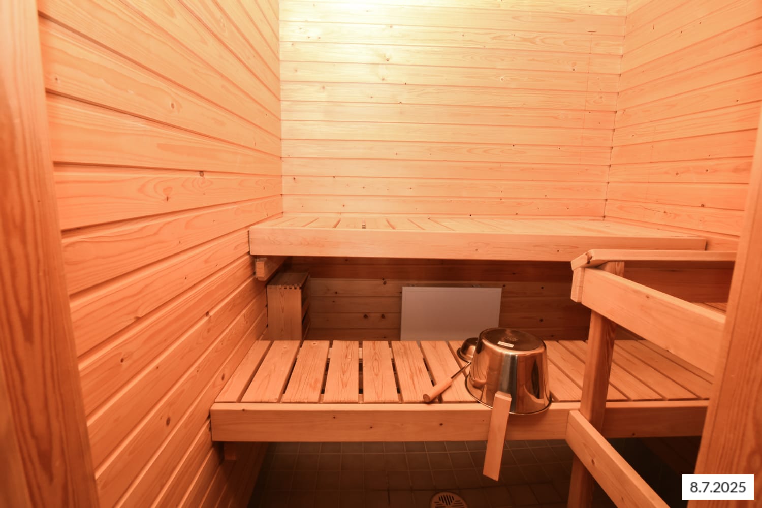Asuinhuoneiden lattiamateriaalina on laminaattilattia ja kylpyhuone on kaakeloitu. Keittokomerossa on jää-pakastinkaappi ja nelilevyinen sähköliesi sekä tilavaraus mikroaaltouunille.