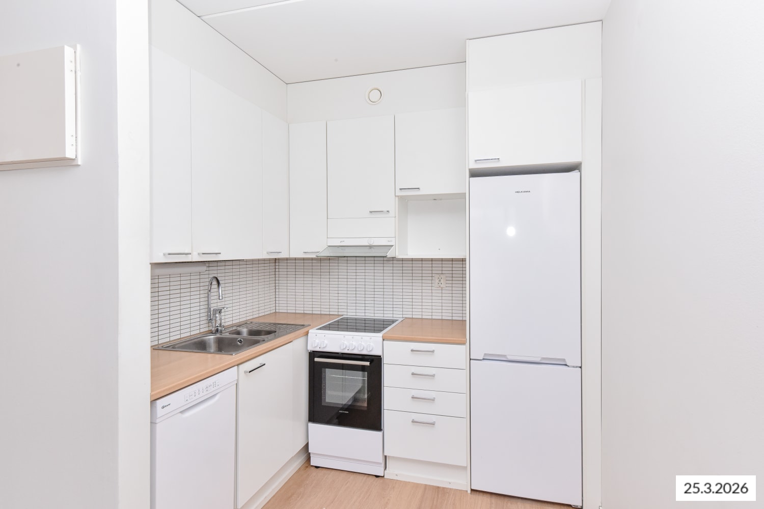 Hyvin hoidettu iso yksiö sijaitsee hyvällä paikalla Leppävaaran palveluiden tuntumassa. Pohjaratkaisultaan mukavan avarassa kodissa sisustamista jäsentää alkovinurkkaus ja parveke antaa etelään.