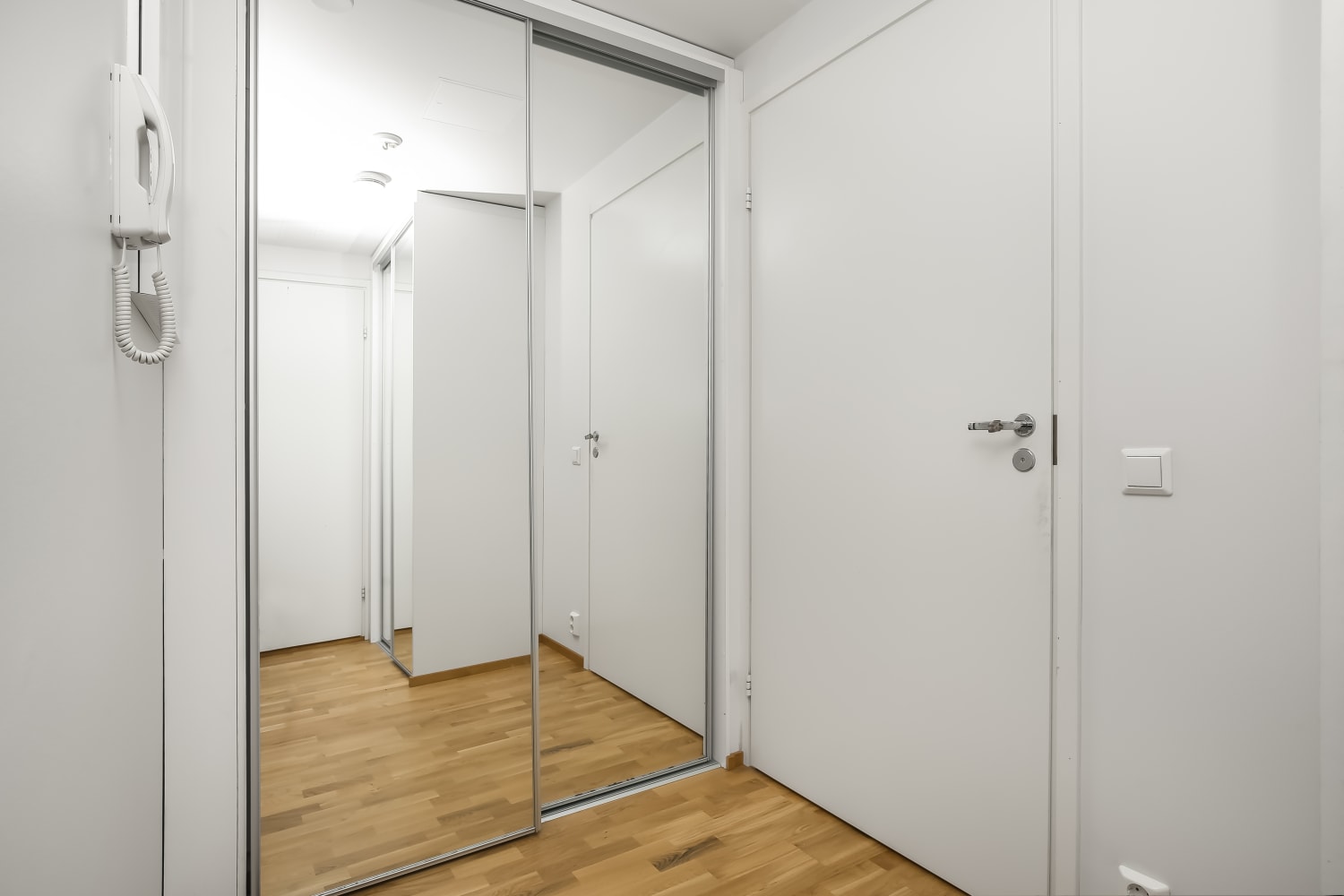 Asuinhuoneissa on tammiparketti- tai laminaattilattiat. Kylpyhuoneessa on mukavuuslattialämmitys, tyylikkään harmaa lattialaatoitus ja isot valkoiset seinäkaakelit. Keittokomerossa on graniittia mukaileva laminaattityötaso, valkoiset kaapistot sekä harmaat Kaakelikeskuksen kalustevälikaakeloinnit. Vakiovarusteina on jää-pakastinkaappi, astianpesukone ja keraaminen liesitaso kalusteuuneineen. Keittiökaapistossa on tilavaraus mikroaaltouunille.