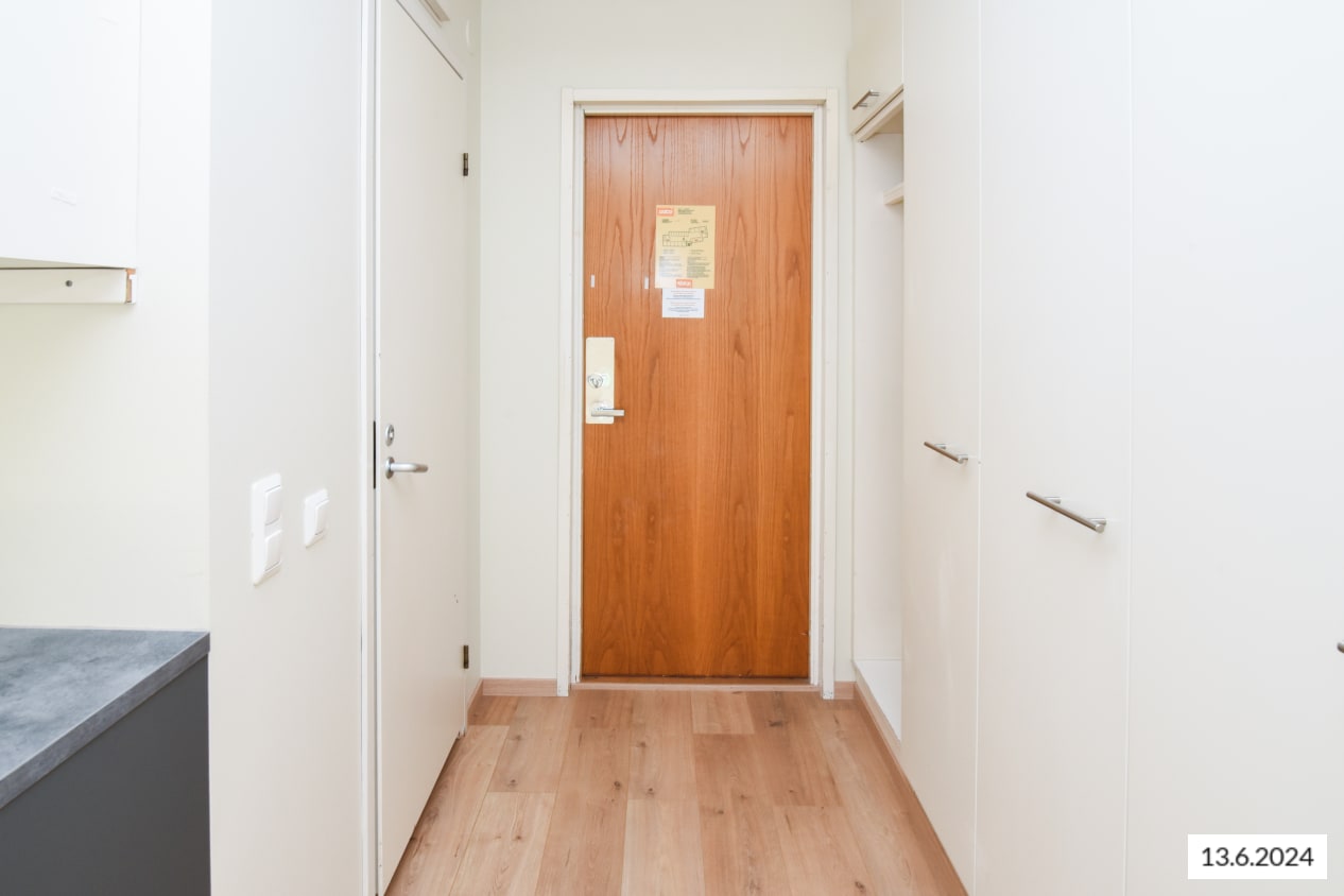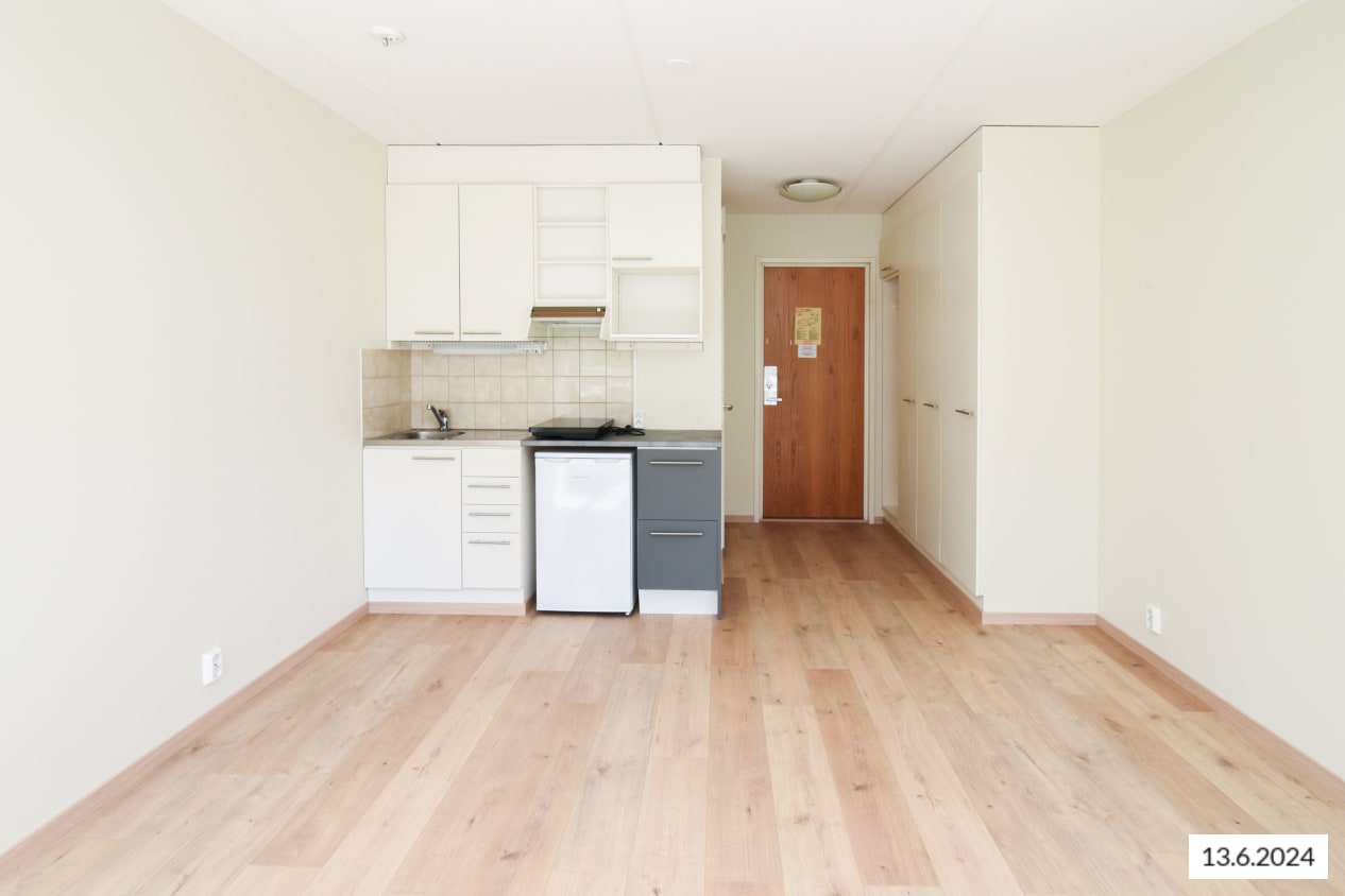 Tehoneliöinen yksiö on toimiva arjen tukikohta, jota voit vuokrata lyhyemmäksikin ajaksi kuukaudesta ylöspäin ilman pitkäaikaista sitoutumista. Pienen puistikon vieressä sijaitsevassa talossa luonnon saa vielä lähemmäs avaamalla ranskalaisen parvekkeen oven. Säilytystilaa on sekä keittiössä että eteisessä. Asunnossa on laminaattilattia.