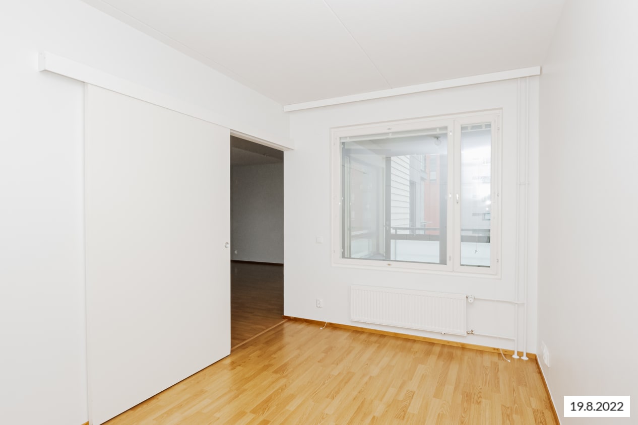 Tämän kodin valttina on avoin pohjaratkaisu, jonka olohuoneesta saa helposti sisustettua näyttävän katseenvangitsijan. Keittiön ja toisen makuuhuoneen ikkunasta näkee pitkälle pohjoiseen yli junaradan ja lasitettu parveke avautuu etelään pihan puolelle. Tilava kolmio sopii loistavasti myös kotona töitä tekevälle pariskunnalle.