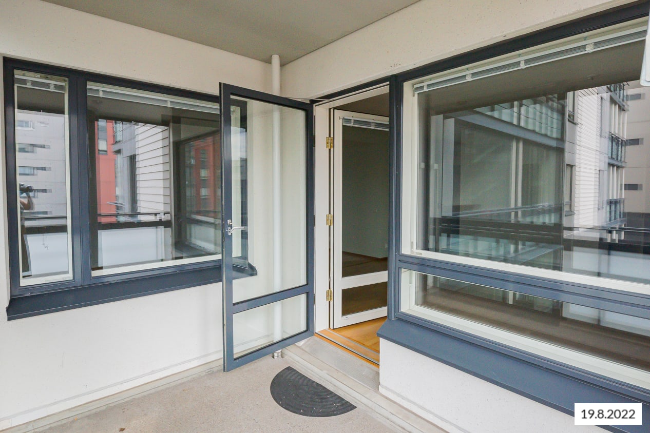 Isot parvekkeet ja vaaleat pinnat