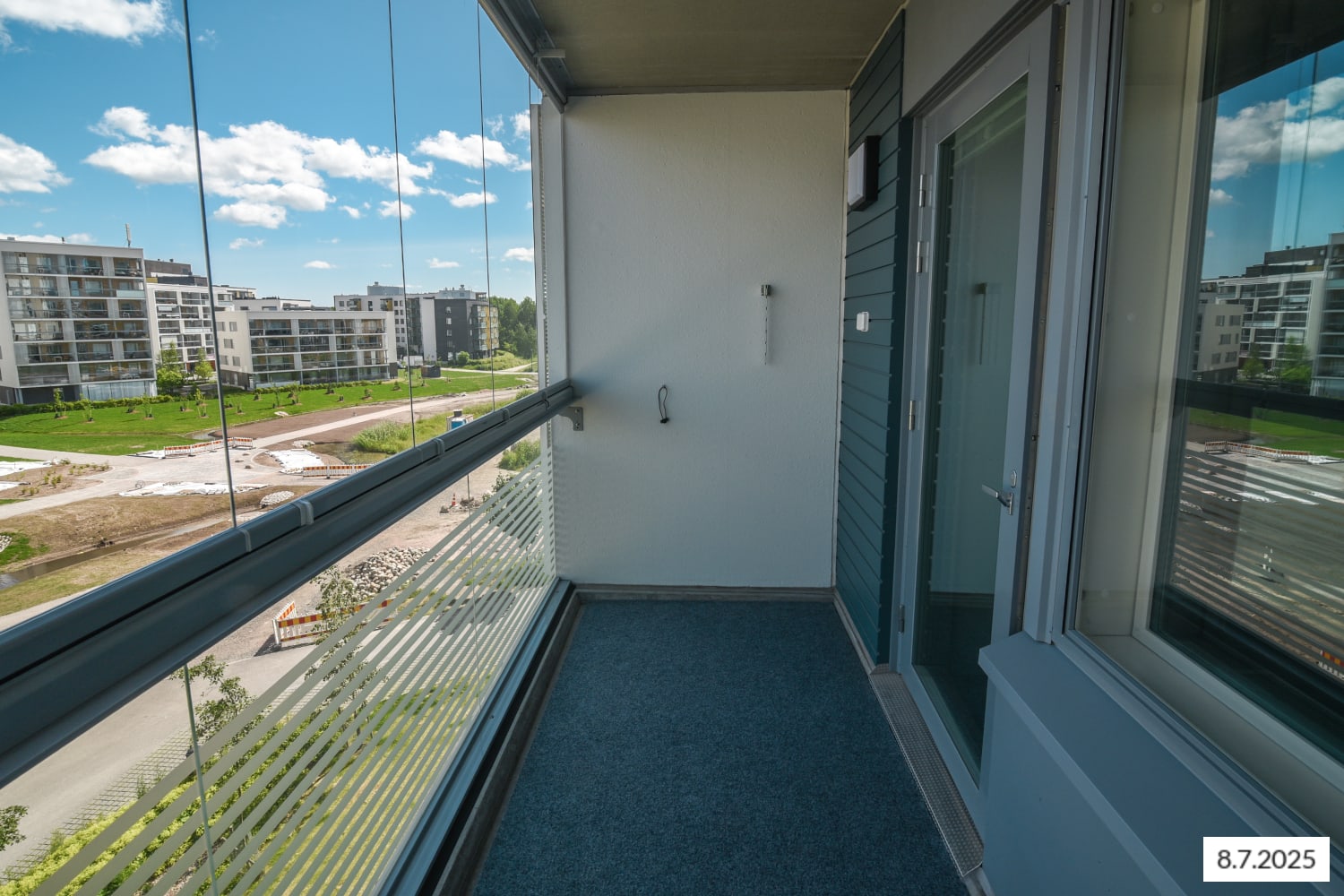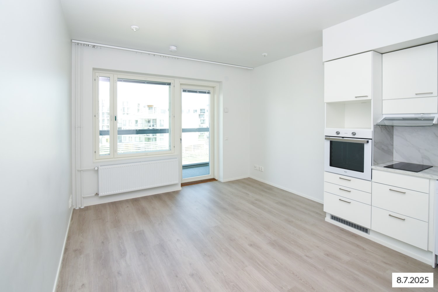Näppärässä kodissa on toimiva pohja, joka antaa useita mahdollisuuksia kalustaa tila juuri sinulle sopivaksi. Täysin uuden asunnon jatkeena toimii koko tilan leveyinen, lasitettu parveke. Kompaktissa yksiössä on näppärä avokeittiö ja kaappitilaa eteisessä. Kodin pintamateriaalit ovat ajattoman kauniita ja vaaleat sävyt toimivat neutraalina pohjana mille tahansa sisustustyylille. Avokeittiössä on raikkaan valkoiset kaapinovet ja marmorikuosiset laminaattitasot. Keittiön varustukseen kuuluu keraaminen liesitaso, kalusteuuni, astianpesukone ja kylmälaitteet sekä varaus mikroaaltouunille. Kylpyhuoneen kalusteet ovat ovat SATOlle suunniteltua, kotimaista Kide-mallistoa ja väriltään valkoiset. Kylpyhuoneen seinät ovat valkoista laattaa ja lattian laatoitus on tumman harmaa. Kylpyhuoneessa on myös varaus pesukoneelle ja kuivausrummulle.