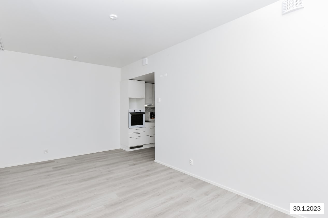Kompaktissa yksiössä on näppärä avokeittiö, kaappitilaa eteisessä ja jokainen neliö hyötykäytössä. Kodin pintamateriaalit ovat ajattoman kauniita ja vaaleat sävyt toimivat neutraalina pohjana mille tahansa sisustustyylille. Avokeittiössä on raikkaan valkoiset kaapinovet ja marmorikuosiset laminaattitasot. Keittiön varustukseen kuuluu keraaminen liesitaso, kalusteuuni, astianpesukone ja kylmälaitteet sekä varaus mikroaaltouunille.