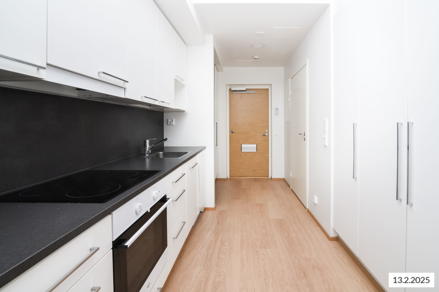 Asuintiloissa lattiat ovat valkaistua tammilankkua mukailevaa laminaattia. Keittiön ja kylpyhuoneen kalusteet ja komerot ovat kotimaista Kankarin kalusteen tuotantoa. Eteisen metallinen design-naulakko on SATOn oma malli. Keittiökaapistojen ovet ovat raikkaan valkoiset. Työtaso ja ylä- ja alakaappien välinen tila ovat harmaata laminaattia. Varustuksena on keraaminen liesitaso, kalusteuuni, astianpesukone ja kylmälaitteet sekä varaus mikroaaltouunille. Kylpyhuoneessa seinät ovat kiiltävän valkoista laattaa. Lattiat ja tehosteseinät ovat harmaata laattaa. Kylpyhuoneen kalusteet ovat SATOn omaa Kide-mallistoa. Pesukoneelle ja kuivausrummulle on varaus.