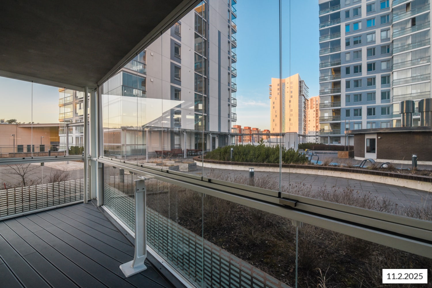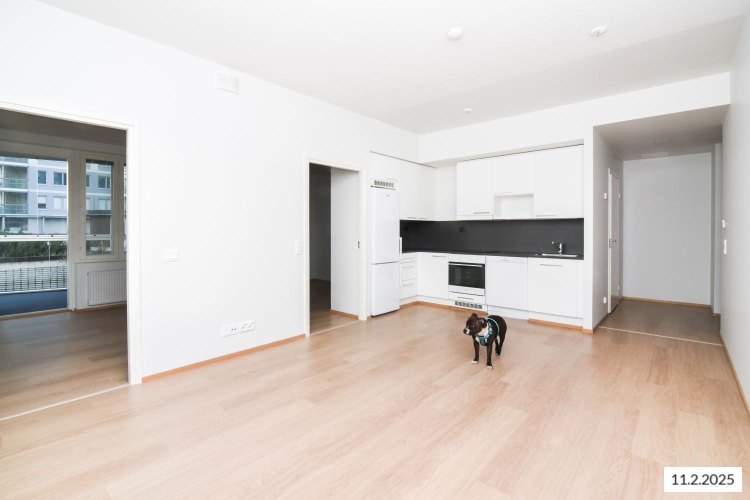 Kompaktin, vaaleasävyisen kolmion sydän on olohuoneen ja avoimen keittiön muodostama viihtyisä oleskelualue, joka on helppo kalustaa asujansa näköiseksi. Tilava lasitettu parveke on kesäaikaan kuin lisähuone.
