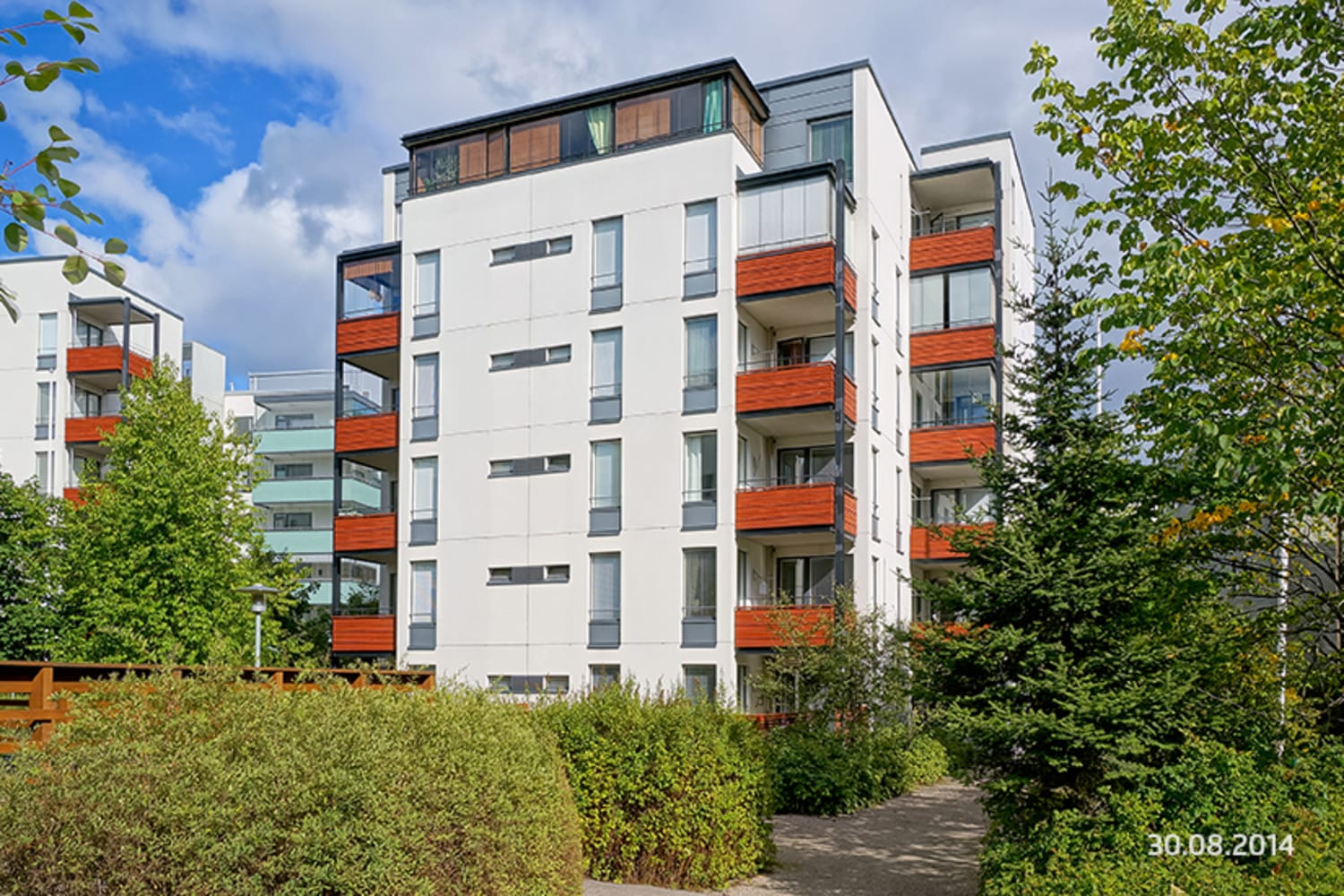Etelä-Leppävaaran kumpuilevassa kaupunkimaisemassa sijaitsevan kerrostalon asunnot ovat valoisia ja viihtyisiä. Ensimmäisen kerroksen huoneistoissa on reilun kokoinen asuntopiha ja muissa lounaaseen avautuva parveke. Suurin osa tämän rauhallisen taloyhtiön asunnoista on osakehuoneistoja.