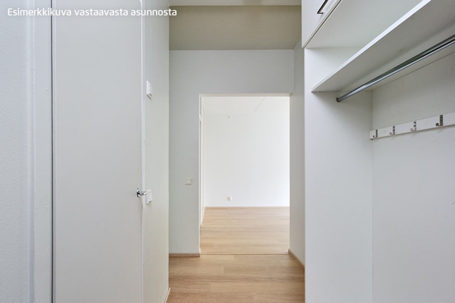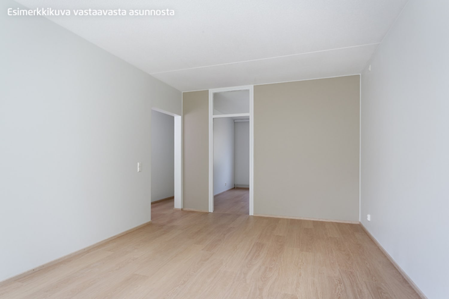 Asuinhuoneissa on valkolakattua tammea mukaileva laminaattilattia. Mattavalkoisella kaakeloidussa kylpyhuoneessa on vaaleanharmaa laattalattia. Keittiön kaapistot ja työtasot ovat valkoiset ja selkeälinjaiset, kalustevälissä hiekansävyinen kaakelointi. Vakiovarusteina ovat jää-pakastinkaappi ja keraaminen liesi.