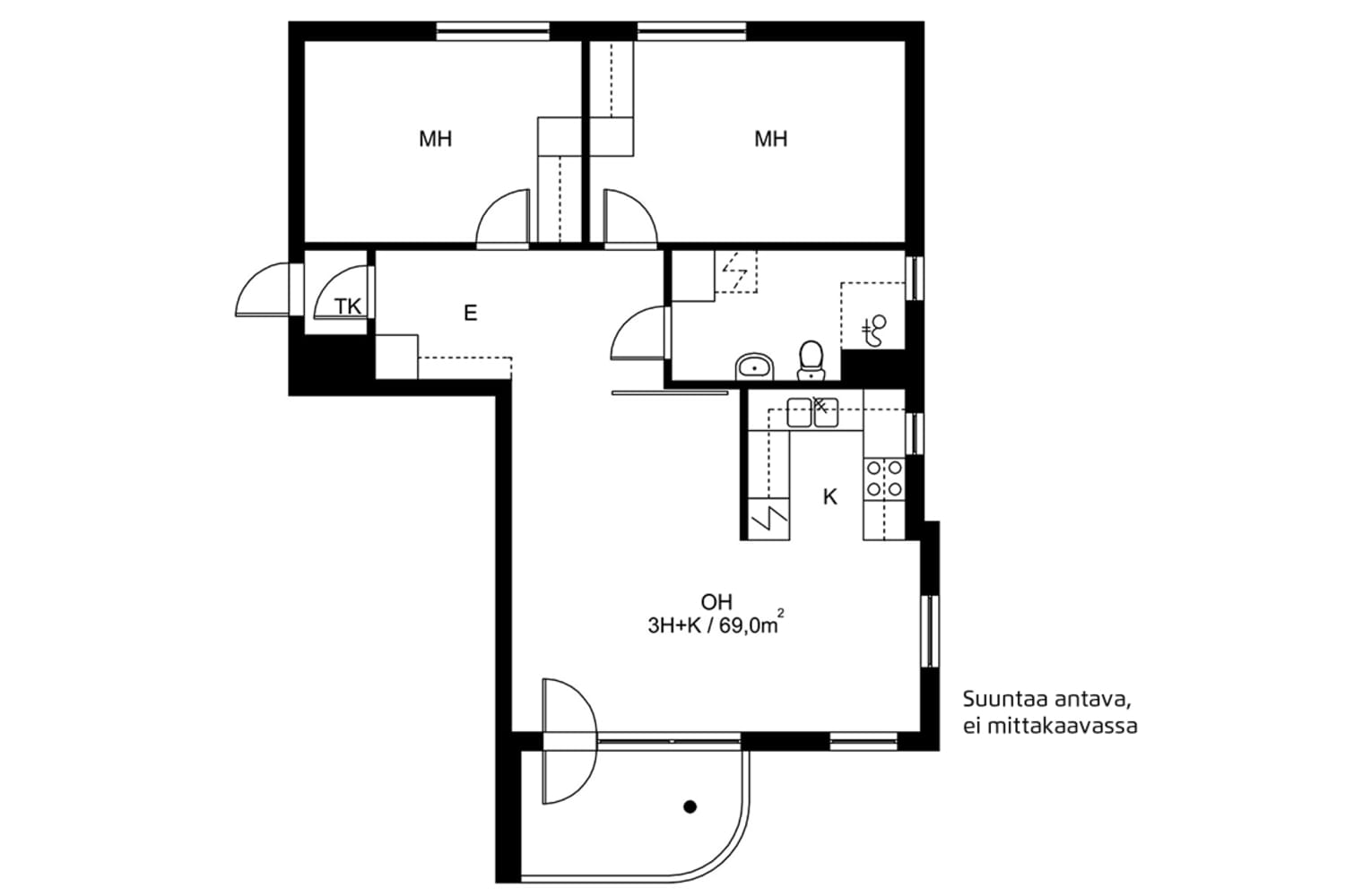 Tilavassa kolmiossa on selkeä pohjaratkaisu, joka tekee sisustamisesta helppoa. Keittiö ja olohuone muodostavat kodikkaan oleskelualueen, jossa ruokapöydälle on tilaa kahden ikkunan äärellä. Omalla parvekkeella voit seurata vuodenaikojen vaihtelua.