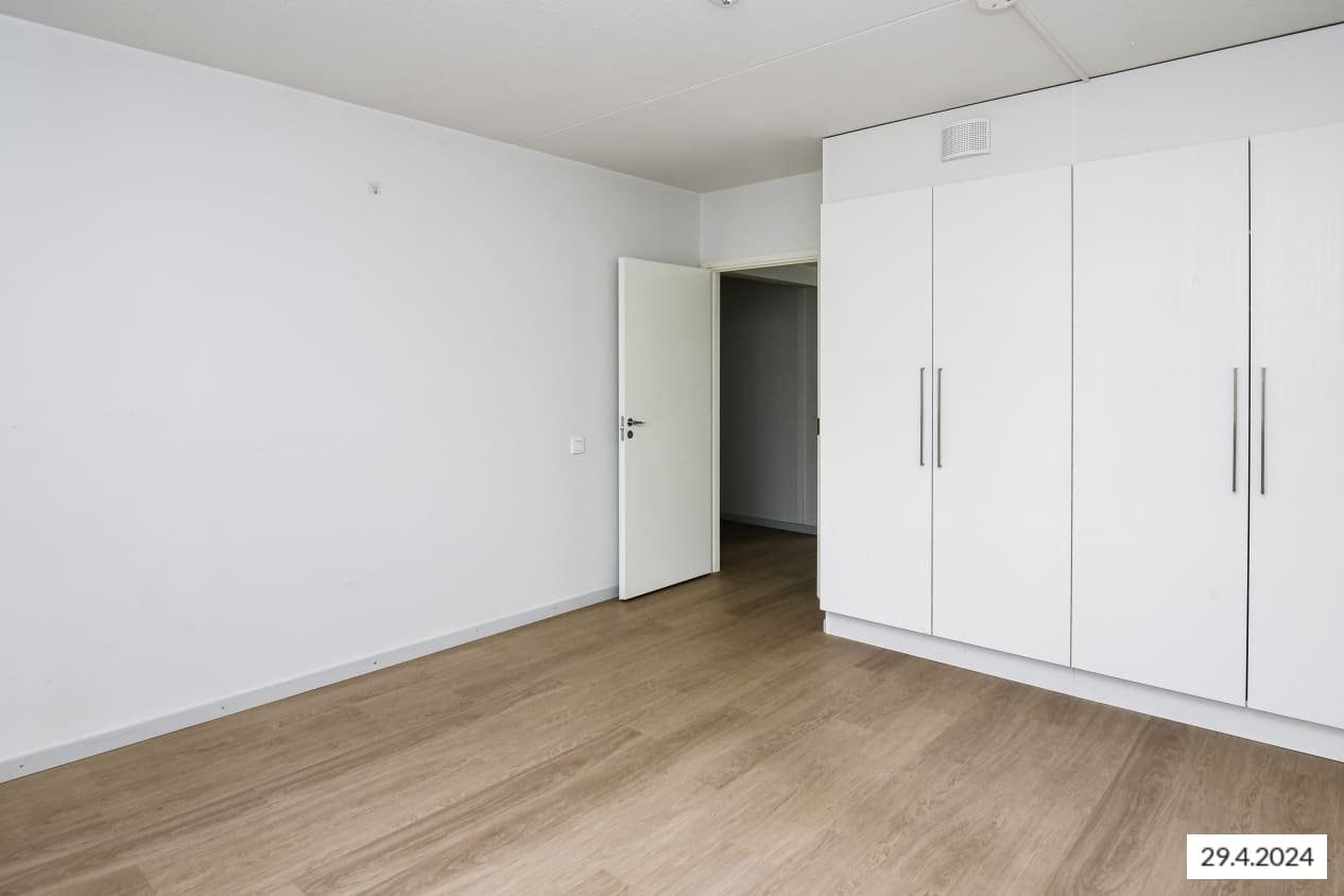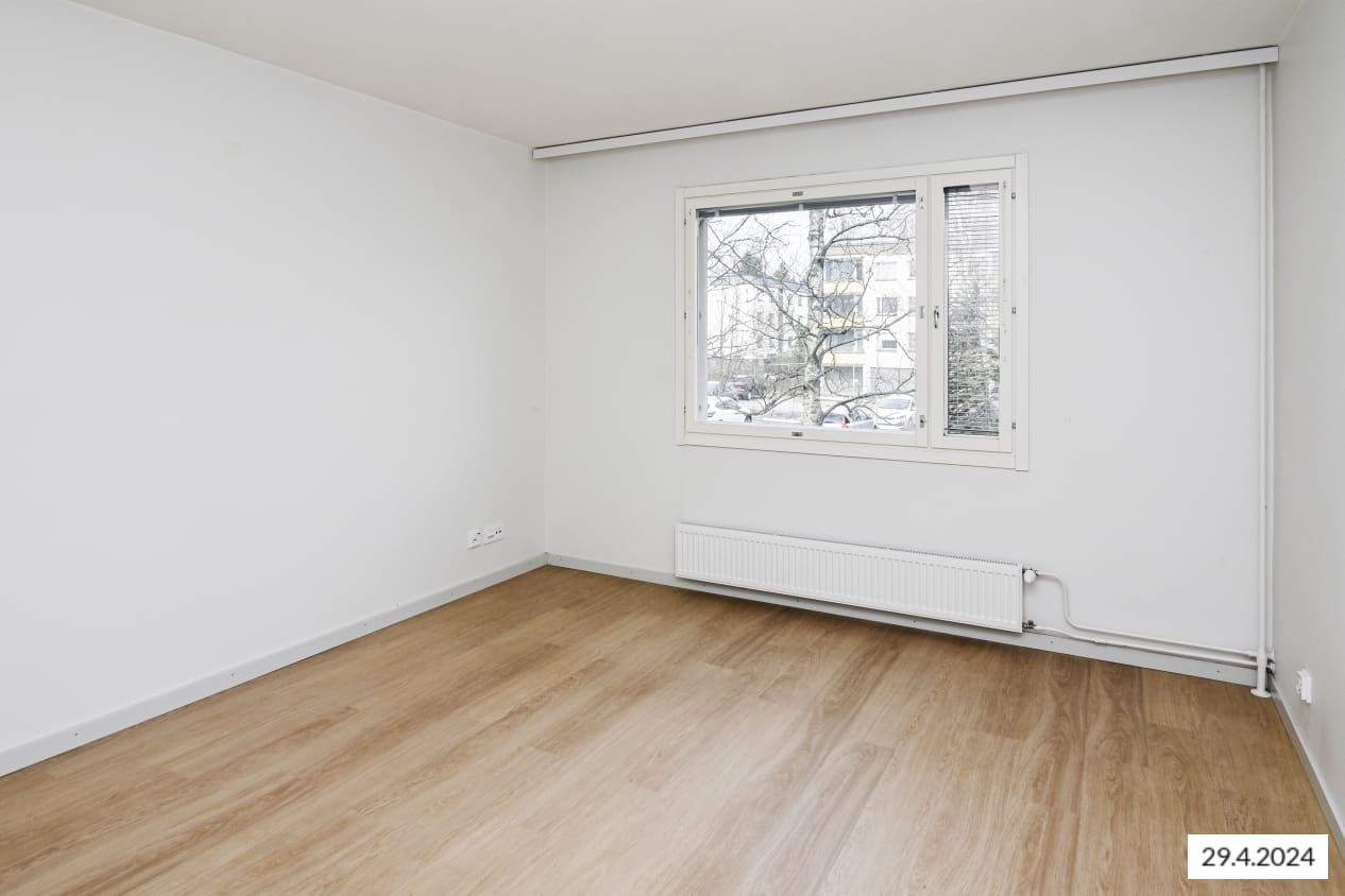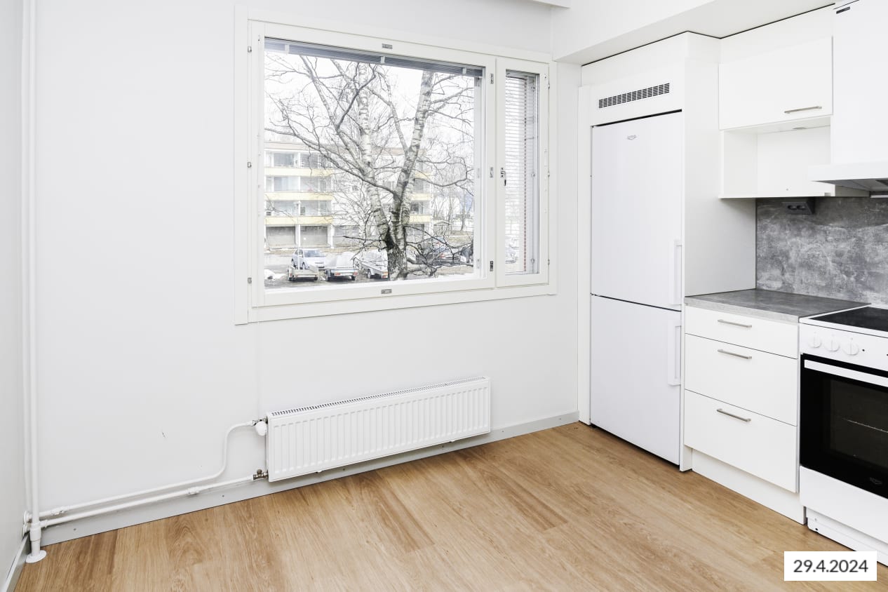 Remontoitu, tilava kaksio aukeaa kahteen ilmansuuntaan. Selkeän pohjaratkaisun ansiosta kalustat kodista helposti oman näköisesi. Kodin lattia on tammilaminaattia ja seinät on maalattu valkoisiksi. Olohuoneen jatkeena on lasitettu parveke. Reilunkokoisessa erillisessä keittiössä mahtuu mukavasti kokkailemaan ja ruokailemaan. Keittiön kaapistot ovat raikkaan valkoiset ja ylä- ja alakaappien välinen tila sekä työtaso ovat harmaata laminaattia. Varustukseen kuuluu keraaminen liesi, liesikupu ja jääkaappipakastin. Kodinkoneet ovat valkoisia. Kylpyhuoneessa on valkoiset SATOn Kide-malliston kalusteet. Seinät ovat valkoista laattaa ja lattia on harmaa. Pyykinpesukoneelle löytyy oma paikka. Vaatesäilytykselle on mukavasti tilaa erillisessä vaatehuoneessa.