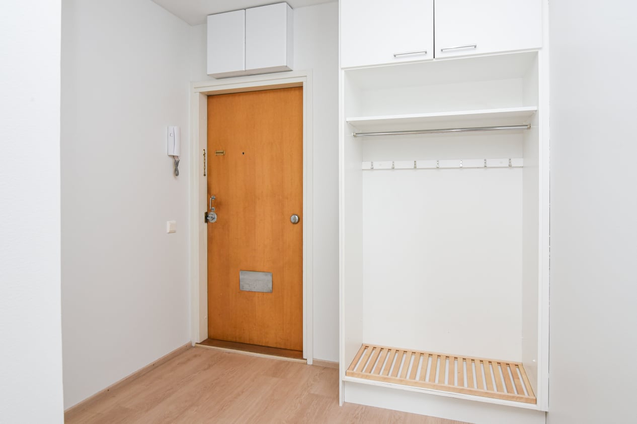 Kompakti 60-luvun koti on peruskorjauksessa saanut vaalean ilmeen ja upouuden ranskalaisen parvekkeen. Rakennusajalleen tyypillisesti olohuoneessa on alkovi, jonka kekseliäs sisustaja saa hyödynnettyä työsopeksi, olonurkkaukseksi tai vaikkapa pienen perheen toiseksi makuutilaksi. Kodin ikkunat avautuvat vehreän pihan puolelle.