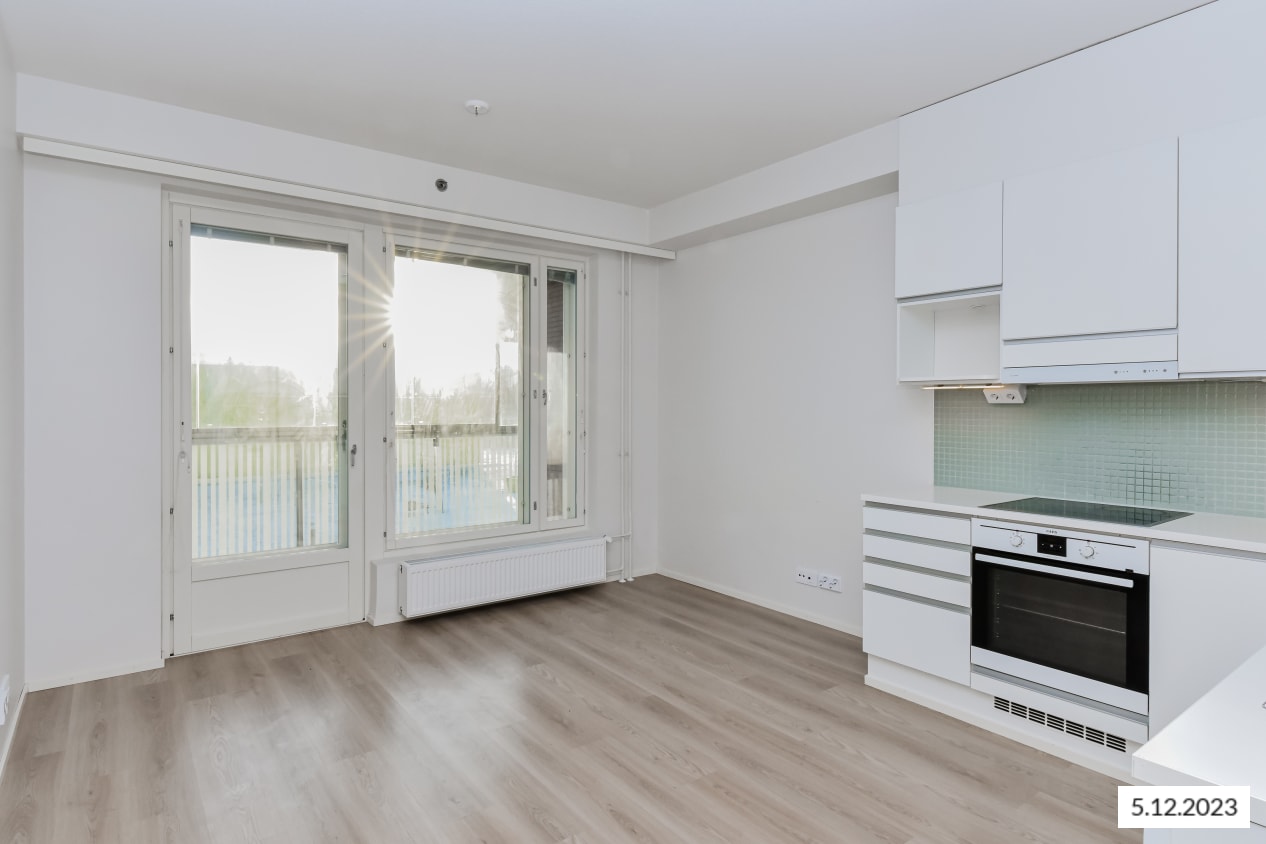 Kotoisa kaksio on helppo kalustaa oman maun mukaisesti. Keittiö ja olohuone yhdistyvät avoimeksi olekelualueeksi. Aurinkoinen, koko asunnon levyinen lasitettu parveke sopii niin ruukkupuutarhurin keitaaksi kuin leppoisaksi kahvittelupaikaksi.