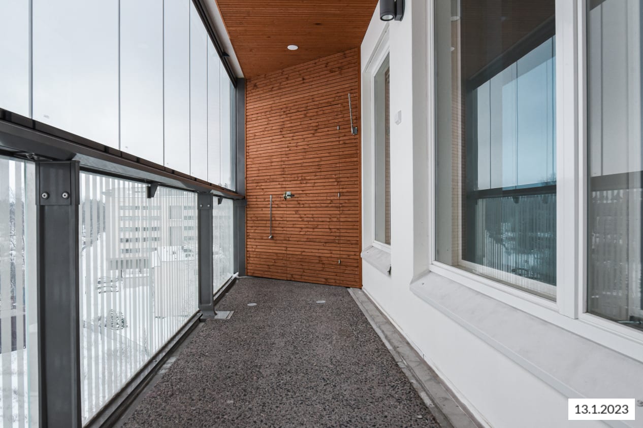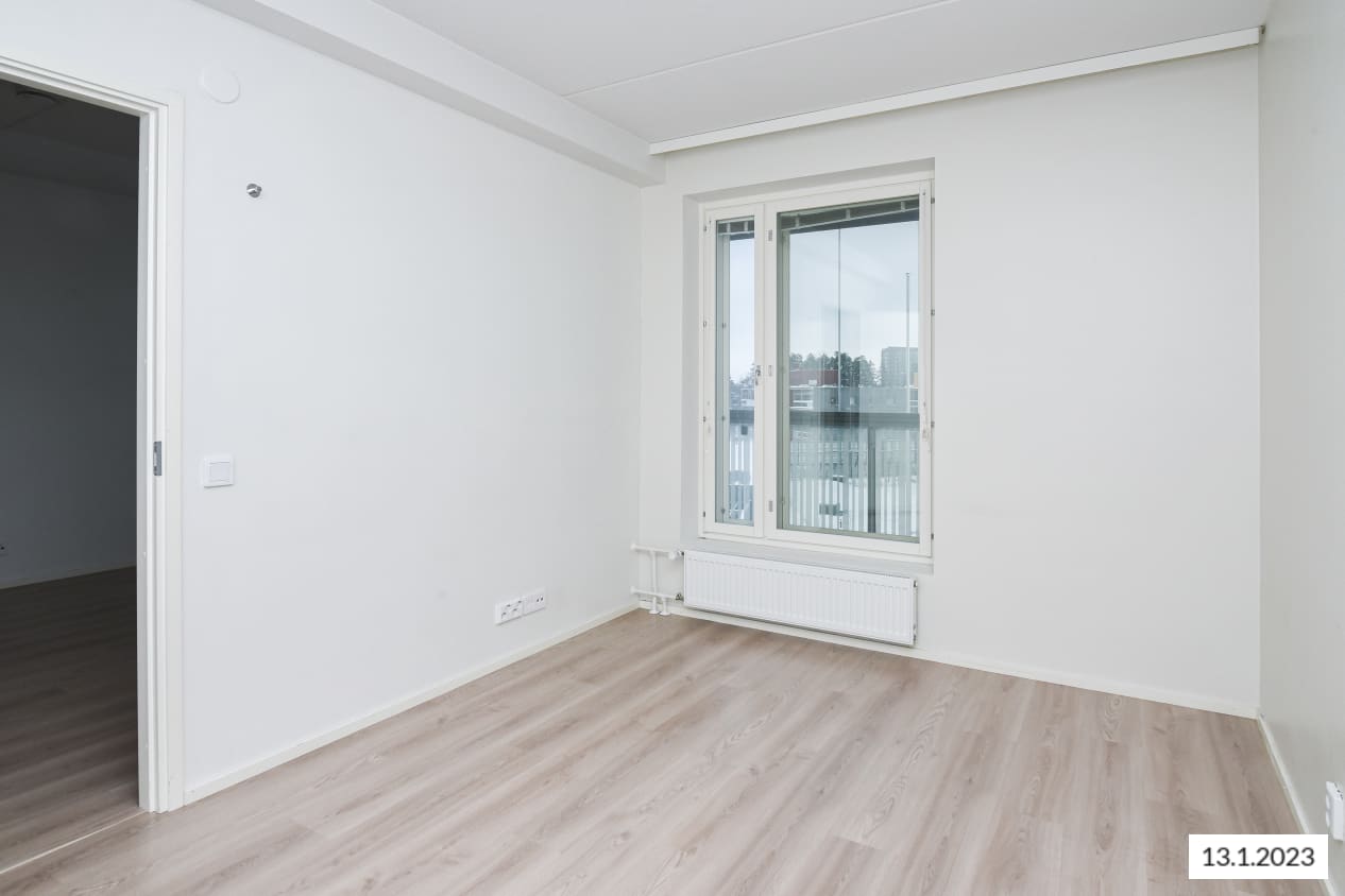 Korkeuksiin kohoava, selkeästi jäsennelty kaksio on helppo kalustaa toimivaksi kodiksi. Ruokailutila sopii osittain avoimen keittiön yhteyteen ja makuuhuone on reilun kokoinen. Itään suuntautuvalta lasitetulta parvekkeelta on näkymät pihan ja kauppakeskuksen suuntaan. Harrastusvälineille sopiva varastotila löytyy parvekkeen nurkkauksesta.