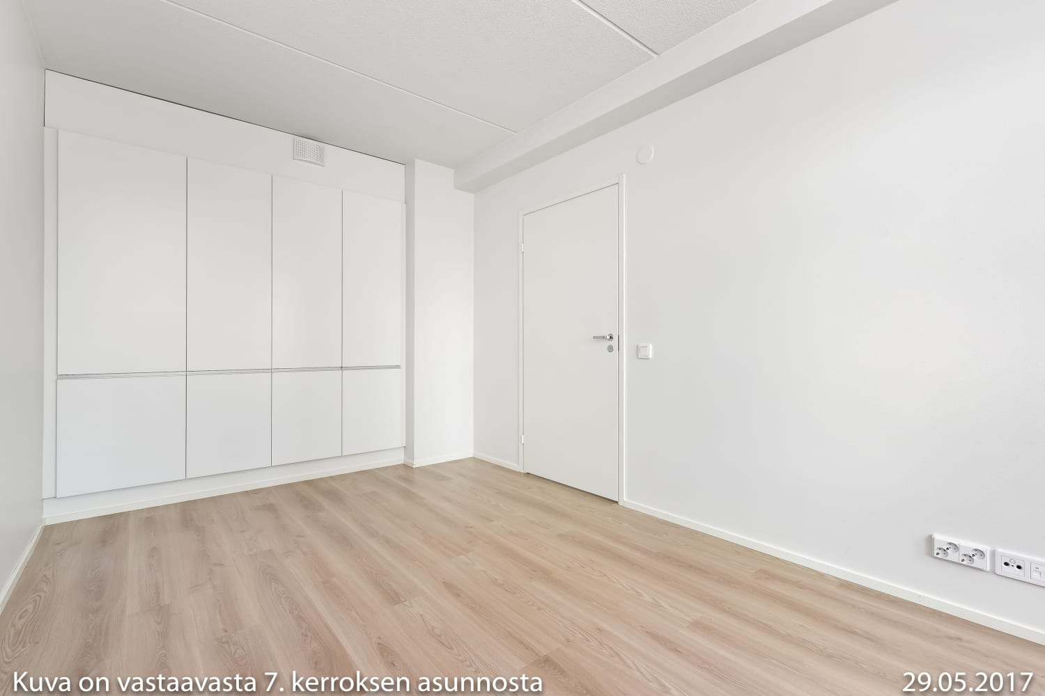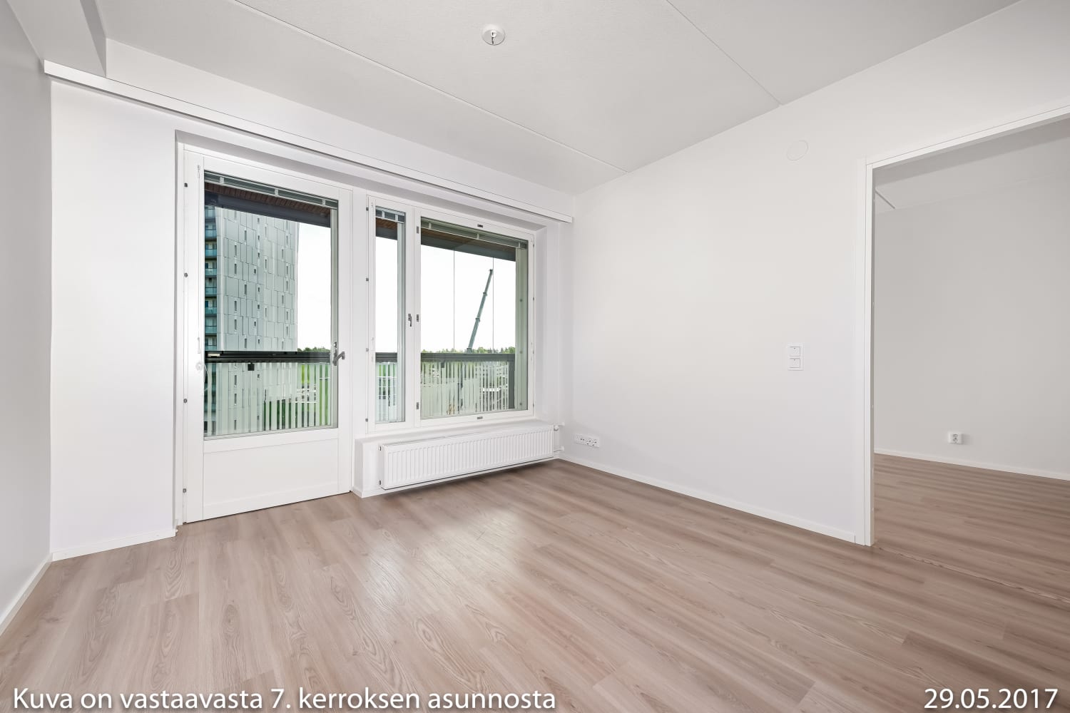 Selkeästi jäsennelty kaksio on helppo kalustaa toimivaksi kodiksi. Ruokailutila sopii osittain avoimen keittiön yhteyteen ja makuuhuone on reilun kokoinen. Itään suuntautuvalta lasitetulta parvekkeelta on näkymät pihan ja kauppakeskuksen suuntaan. Esimerkiksi harrastusvälineille sopiva varastotila löytyy parvekkeen nurkkauksesta.