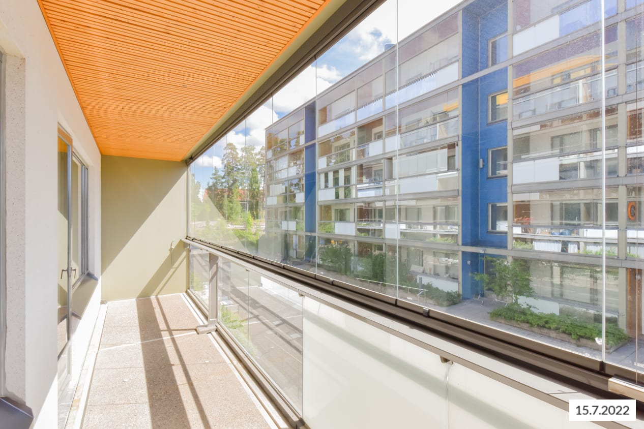Kodikkaan kaksion olohuone ja avoin keittotila muodostavat avaran yhtenäisen oleskelualueen, joka on helppo kalustaa asujansa näköiseksi. Makuuhuoneessa on vaatesäilytykselle ylellisen tilava vaatehuone. Olohuoneesta pääsee koko asunnon levyiselle lasitetulle parvekkeelle ja oma sauna tarjoaa mukavan rentoutumishetken päivän päätteeksi.