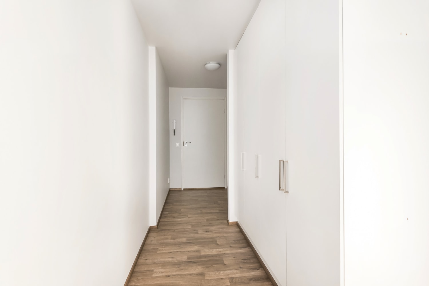 Huoneiston lattiat ovat tyylikästä laminaattia. Keittiön kaapistot ovat valkoiset ja kaapistojen välitila on laatoitettu valkoisella kiiltävällä laatalla tiililadontaa käyttäen. Työtaso on valkaistun tammen sävyistä laminaattia. Keittiön varusteisiin kuuluu valkoiset kodinkoneet, liesi, astianpesukone, jääkaappipakastin sekä varaus mikroaaltouunille. Kylpyhuoneen seinät ovat kiiltävän valkoista tiililadottua laattaa. Lattiat ovat väriltään harmaat. Kylpyhuoneen kalusteet ovat valkoiset, pyykinpesukoneelle ja kuivausrummulle on varaus.