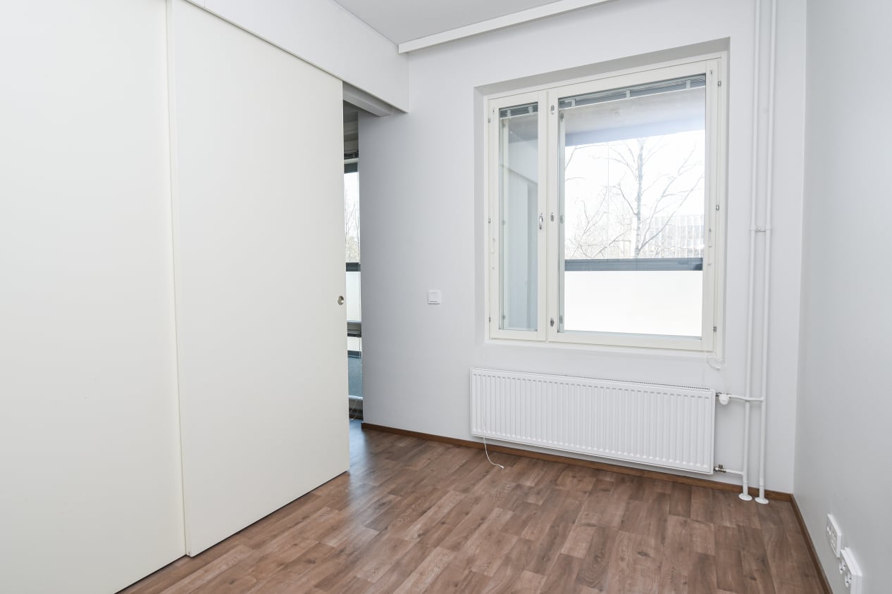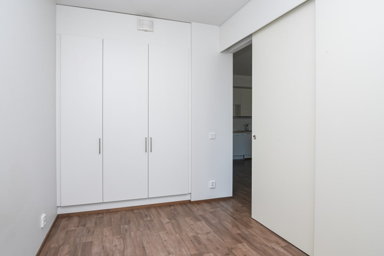 Käytännöllisen kaksion sydän on keittiön ja olohuoneen muodostama yhtenäinen valoisa tila, joka on helppo sisustaa viihtyisäksi. Makuuhuone on erotettu olohuoneesta kahdella liukuovella ja kulku sinne käy näppärästi kummaltakin puolelta sänkyä. Olohuoneesta on käynti aurinkoiselle lasitetulle parvekkeelle, jossa on kesällä mukava paikka rentoutua viileämpinäkin iltoina.