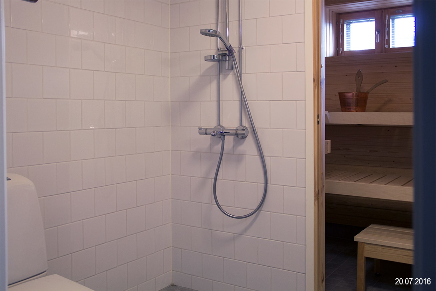 Valoisan päätyasunnon makuuhuoneet ovat omassa rauhassaan talon päätyseinän puolella. Kauniin vaaleasävyisen saunan viihtyisyyttä lisää ikkuna löylyhuoneessa. Olohuoneesta on käynti aurinkoiselle lasitetulle parvekkeelle, joka on kesällä mukava paikka rentoutua viileämpinäkin iltoina.
