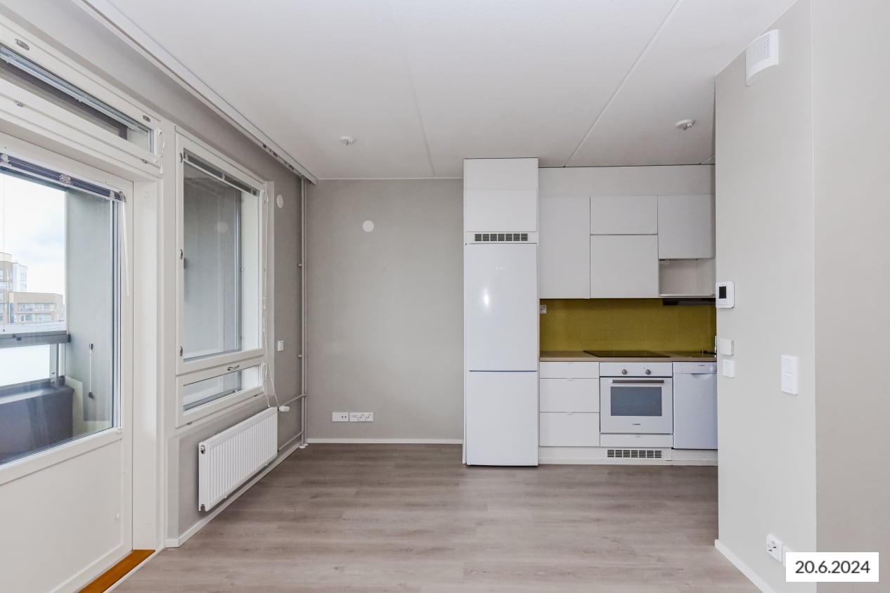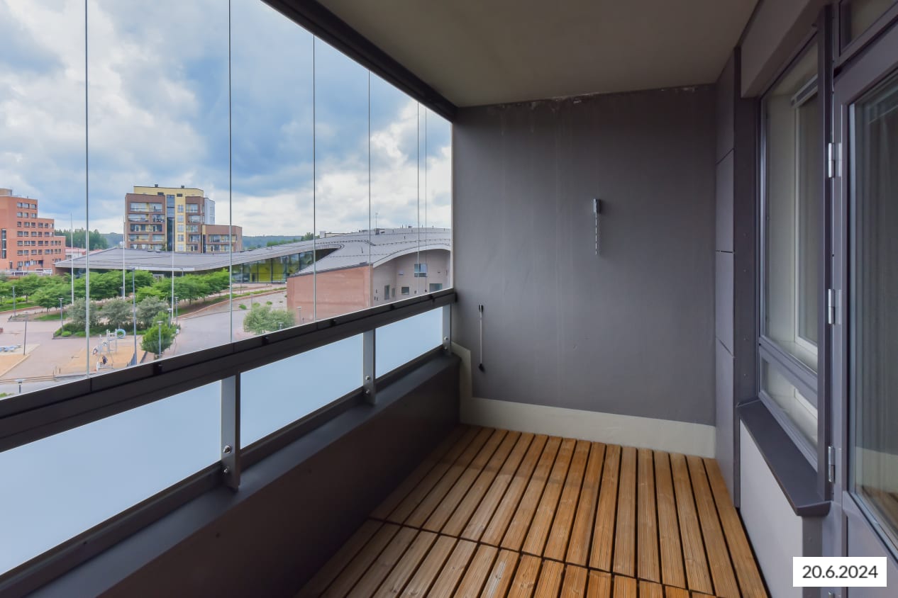 Viihtyisän pikkukodin keittiö aukeaa oleskelutiloihin ja kaapistojen jatkeeksi mahtuu ruokapöytä kodikkaasti ikkunan alle. Rauhallinen nukkumasoppi löytyy kaapistolla rajatusta alkovista. Kodin lisäilo on lasitettu eteläparveke, jonka voi sisustaa mieleisellään tavalla. Varhain keväällä auringonvalosta lämpiävä tila on viherpeukalon unelmien keidas.