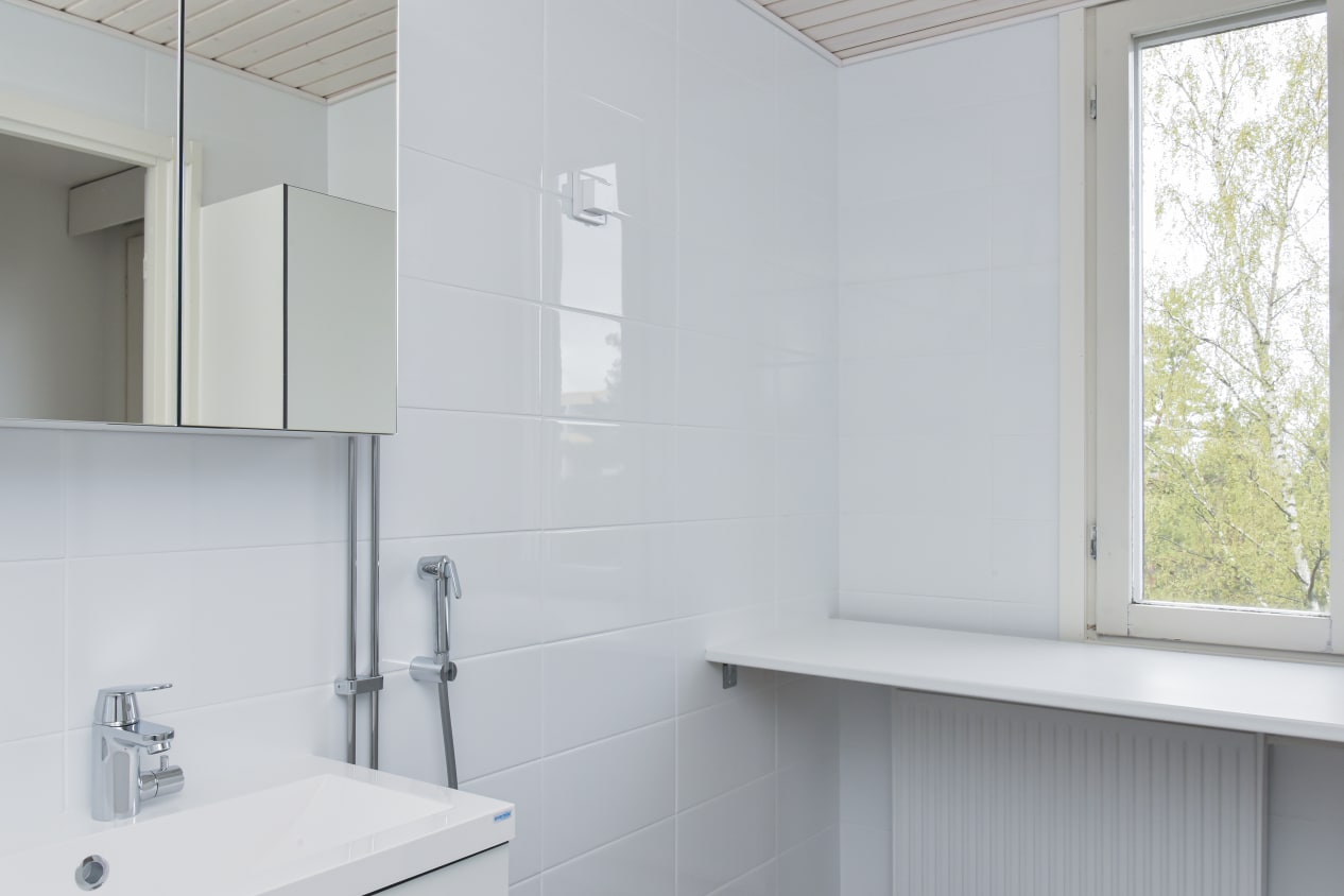 Kaipaatko tilaa ja avaruutta ympärillesi? Siinä tapauksessa tämä koti voi olla juuri sinua varten. Asunto on juuri valmistunut pintaremontista vuokrattavaksi ja tähän kotiin pääset muuttamaan vaikka saman tien. Remontissa on maalattu asunnon seinät puhtaan valkoisiksi ja uusittu kylpyhuoneen laatoitukset niin seinillä kuin lattiassa. Kodin pohjaratkaisu on toimiva ja mahdollistaa monentyyppisten tilatarpeiden toteuttamisen. Eteistila jatkuu kaapistojen jälkeen hieman leveämpänä, mahdollistaen esimerkiksi työpisteen sijoittamisen tilaan joko etätöitä tai pienen koululaisen läksyjen tekemistä varten. Iso ja avara olohuone on helppo sisustaa ehjien seinäpintojen vuoksi haluamanlaiseksi, ja olohuoneen jatkeena avautuvalla tilavalla parvekkeella on mukava nauttia lämpimistä kesäpäivistä. Erilliseen keittiöön sopii mainiosti vähän isompikin ruokapöytä.