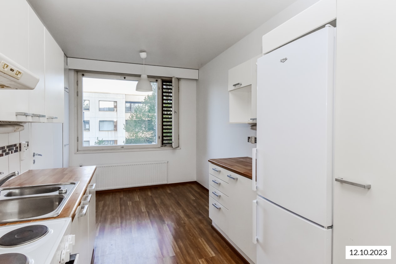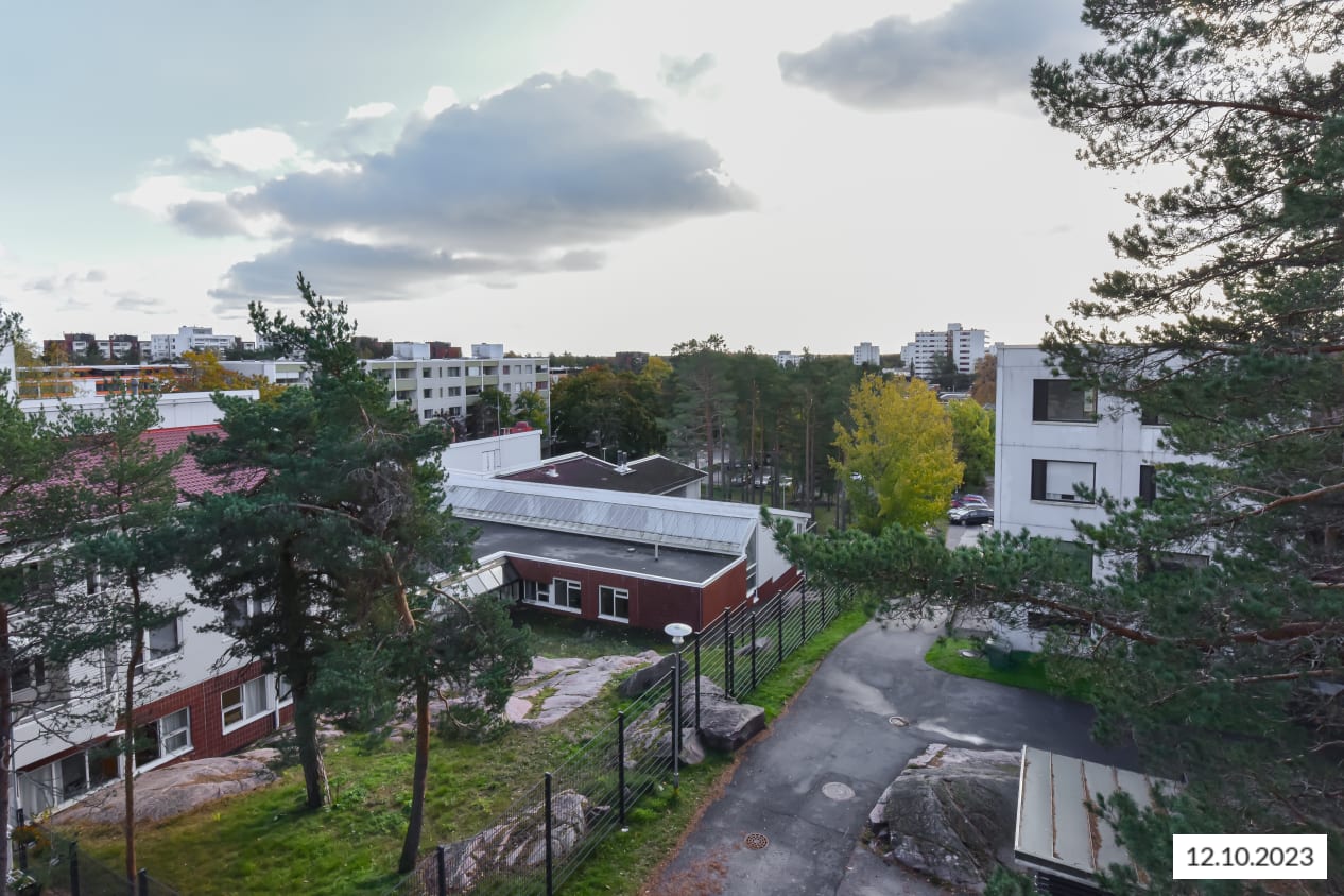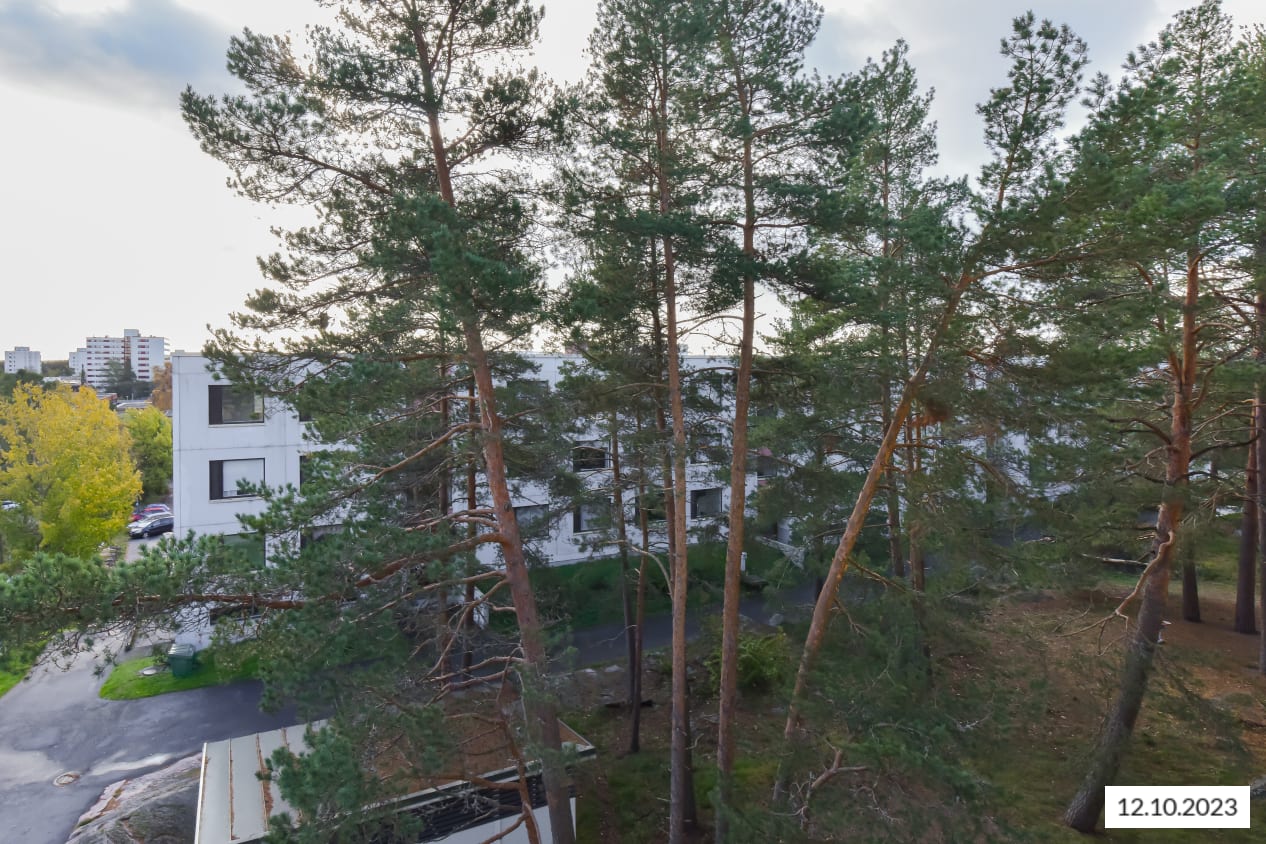Rauhallisen päättyvän tien päässä vehreällä mäntykalliolla sijaitsevassa matalassa kerrostaloyhtiössä on vapautunut tilava ja valoisa kolmio, jonka suojaisa parveke avautuu eteläkaakkoon pihalle. Avara olohuone, reilun kokoinen vaatehuone sekä ikkunallinen kylpyhuone lisäävät asumismukavuutta.