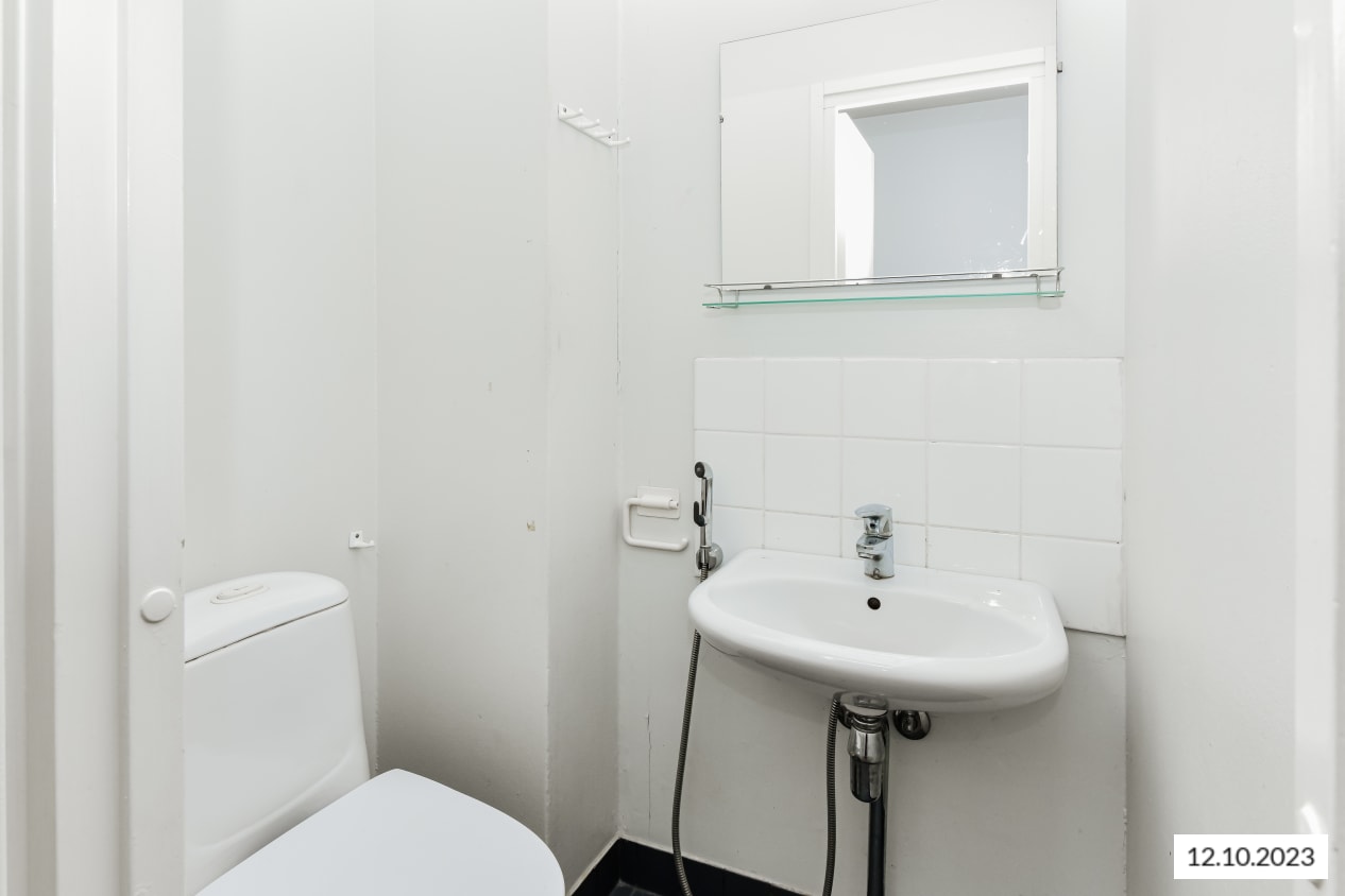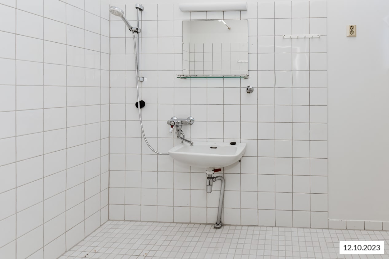 Asuinhuoneissa on laminaattilattiat. Ammeellisessa kylpyhuoneessa on laattalattia ja osittain kaakeloidut seinät. Keittiössä on jää-pakastinkaappi ja nelilevyinen sähköliesi.