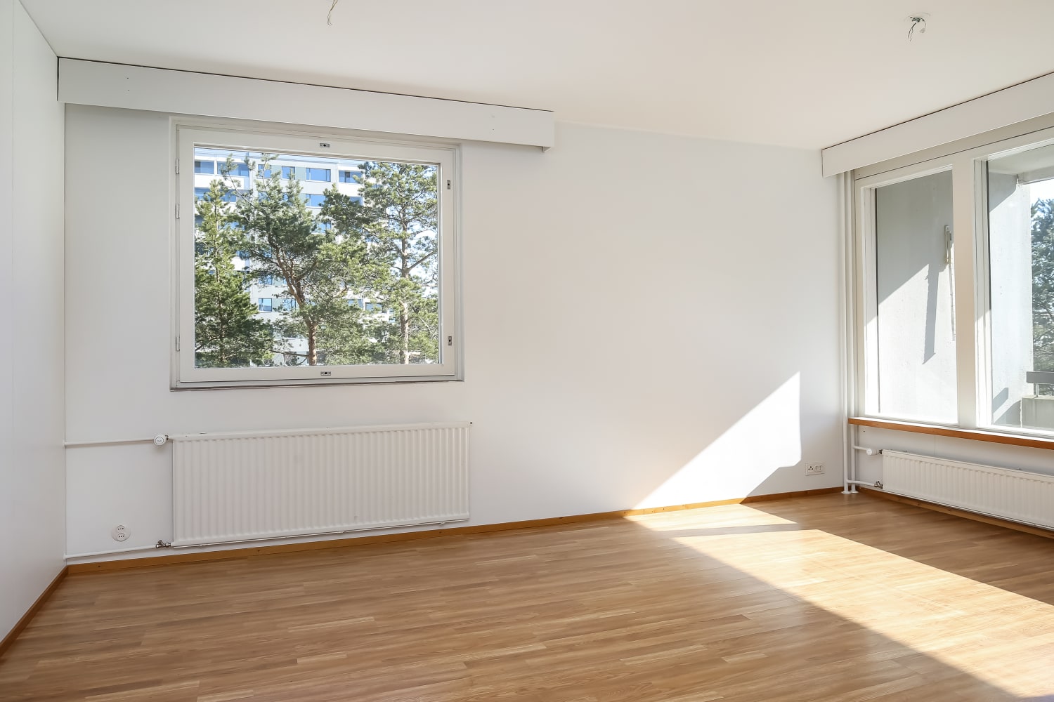 Rauhallisen päättyvän tien päässä vehreällä mäntykalliolla sijaitsevassa taloyhtiössä on vapautunut tilava ja valoisa parvekkeellinen koti. Isosta olohuoneesta saa helposti koko perheen kokoontumispaikan ja vaatehuoneen ansiosta säilytystilaa on reilusti.