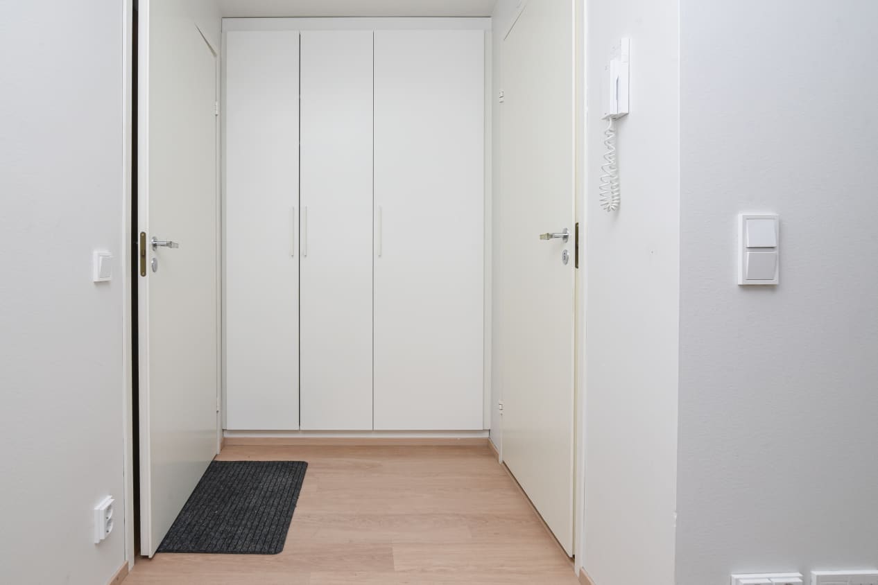 Kauniin kaksion sydän on keittiön ja olohuoneen muodostama yhtenäinen viihtyisä tila, josta makuuhuone on erotettu liukuovin. Olohuoneeseen aukeaa mannermaista tunnelmaa tuova ranskalainen parveke ja isot ikkunat, jotka tuovat valon sisälle asuntoon. Makuuhuoneeseen mahtuu parisängyn lisäksi vaikkapa pieni työtila.