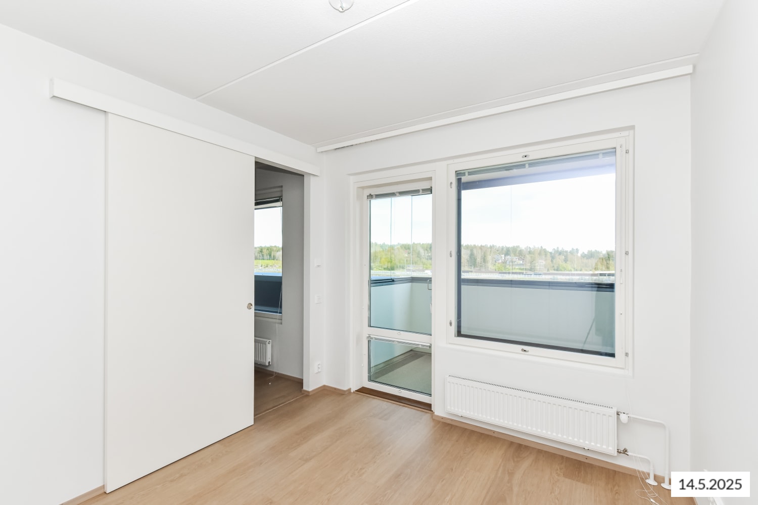 Valoisan ylimmän kerroksen kaksion sydän on keittiön ja olohuoneen muodostama yhtenäinen tila, josta makuuhuone on erotettu liukuovella. Makuuhuoneeseen mahtuu parisängyn lisäksi esimerkiksi pieni työtila ja sieltä on käynti lasitetulle parvekkeelle, jossa on kesällä mukava nauttia vaikkapa aamukahvit.