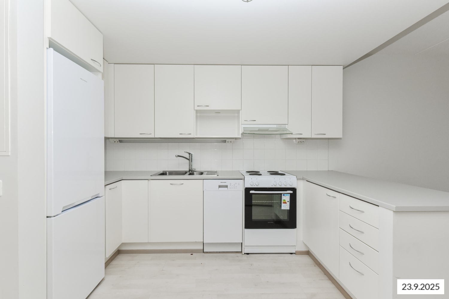 Tässä kaksiossa on loistavat puitteet elää mukavasti! Kodissa on erillinen makuuhuone, tilava olohuone sekä olohuoneen tilaan sulautuva keittiö. Olohuoneen puolelle saat halutessasi aseteltua ruokapöydän sekä sohvaryhmän. Keittiöstä löydät kaikki tarvittavat kodinkoneet astianpesukoneesta tilavaan jääkaappi-pakastimeen. Säilytystilaa tuo erillinen, tilava vaatehuone.